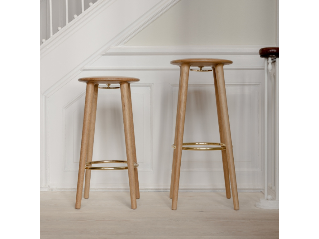 Barová židle The Socialite od značky Umage je mistrovským spojením nadčasového řemesla a moderní elegance. Její celodřevěné provedení a precizně tvarovaná podnož dodává interiéru přirozenou harmonii a teplo. Mosazný opěrný kruh nejen zvyšuje stabilitu, ale zároveň slouží jako praktická opora pro nohy. Díky minimalistickému designu se snadno začlení do kuchyně, jídelního koutu či domácího baru. The Socialite je perfektní volbou pro ty, kteří oceňují kvalitní materiály a nadčasovou estetiku.