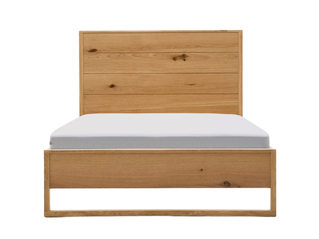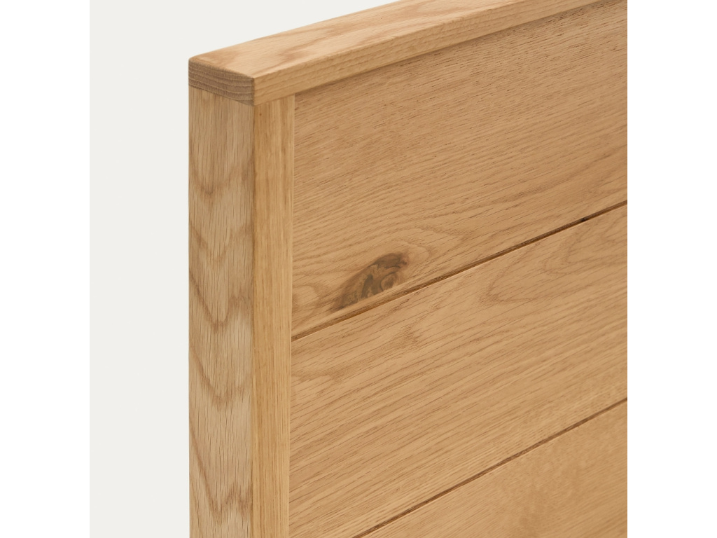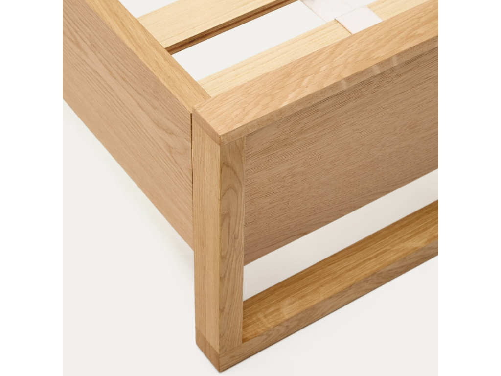 Jednolůžková postel Alguema z dílny značky Kave Home je dodávána včetně roštu a prostorného čela. Je vyrobená z dubové dýhy s velmi atraktivní a výraznou kresbou, která dokonale zútulní interiér. Díky této stylové sérii můžete navíc celou vaši ložnici dokonale sjednotit – najdete v ní noční stolky i komody různých velikostí, které se budou skvěle doplňovat. Alguema se hodí především do rustikálních interiérů, nadchne všechny milovníky přírodních materiálů.