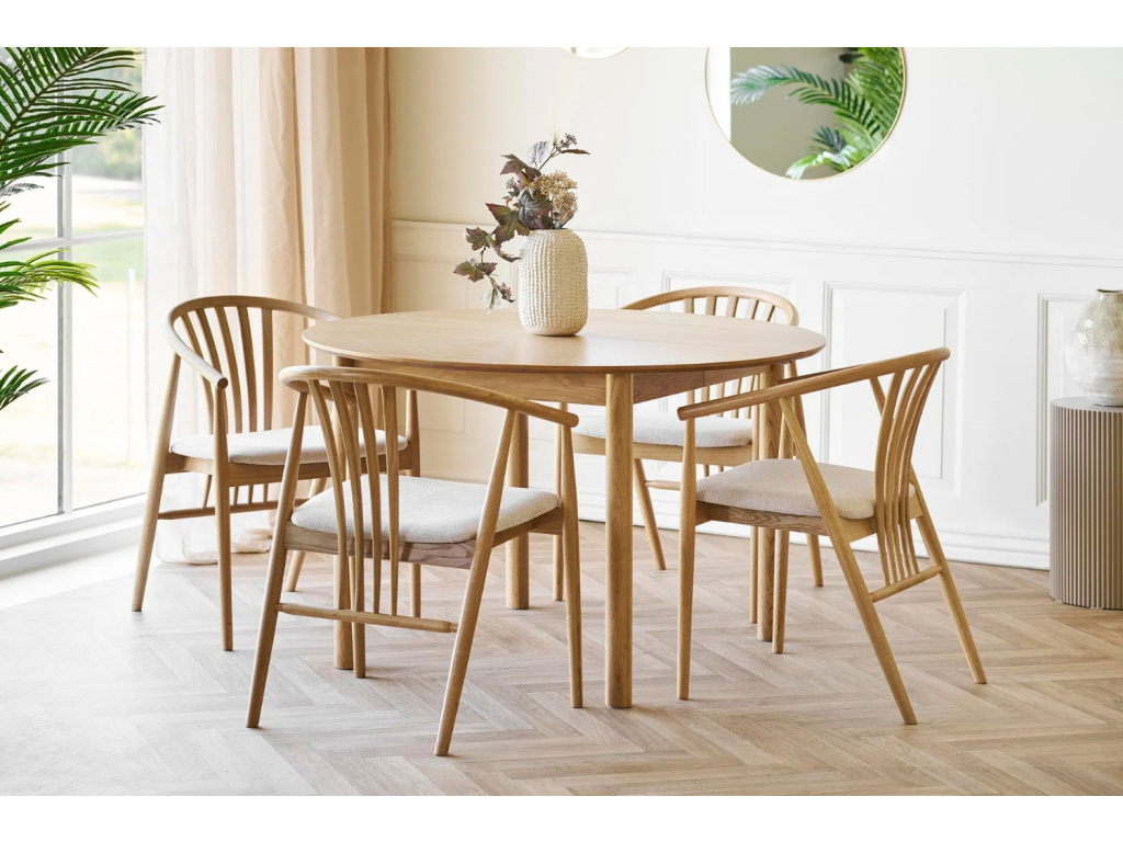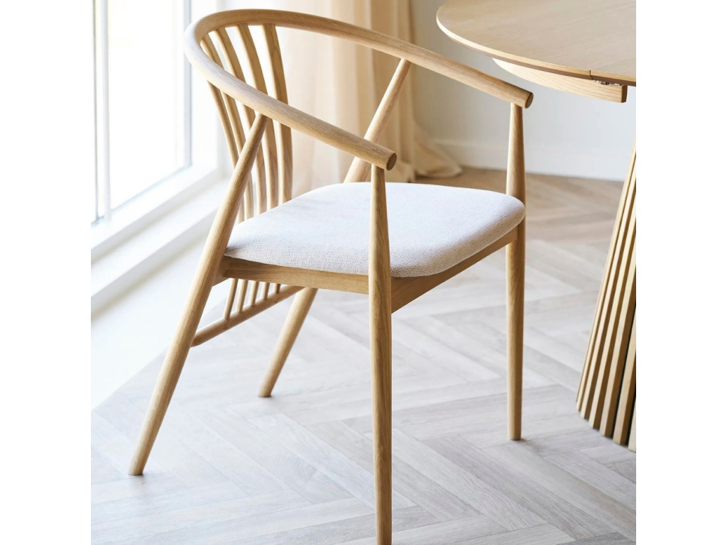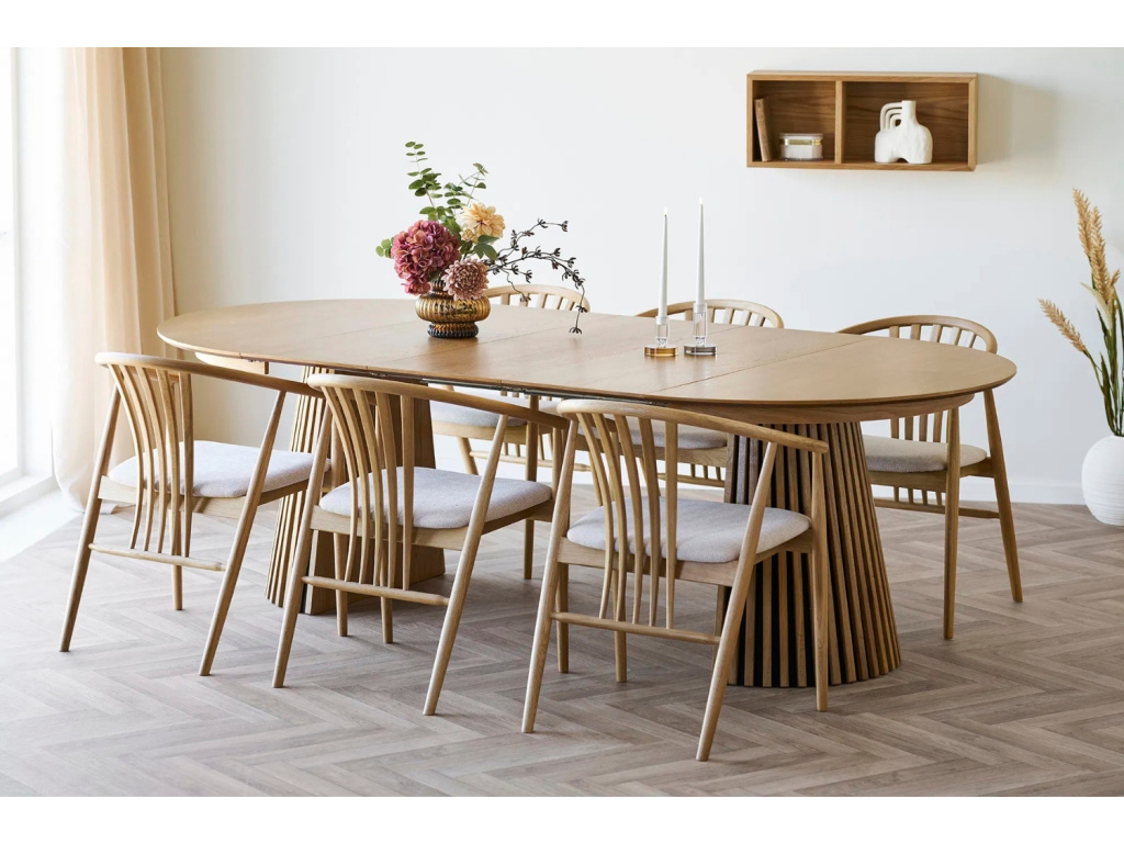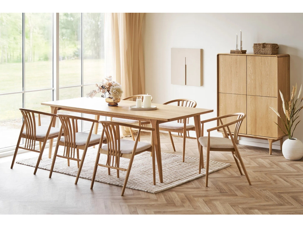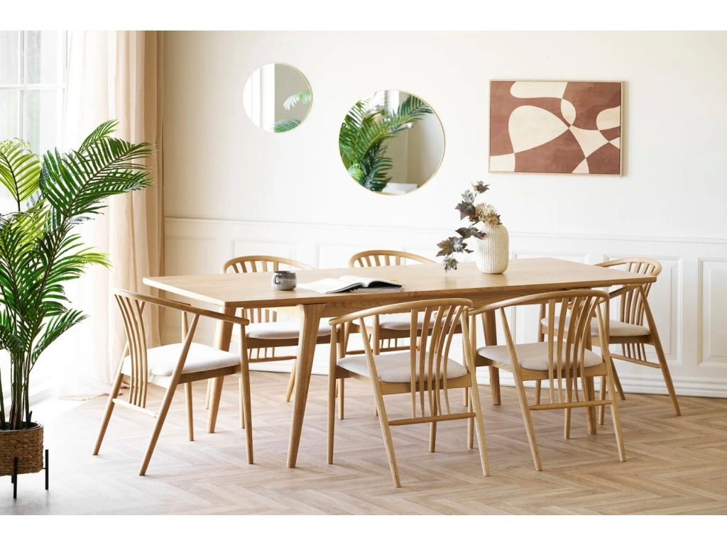 Jídelní židle Augustin kombinuje nadčasový design s pohodlím, které oceníte při každodenním sezení. Přírodní dubové dřevo dodává židli nadčasový vzhled, který se snadno sladí jak s moderním, tak i s minimalistickým interiérem. Zakřivené opěrky v kombinaci s vertikálními prvky působí vzdušně a dodávají židli elegantní vzhled, přičemž sedák z kvalitní koženky zajišťuje maximální komfort, který si rychle zamilujete. Díky stylovému tvaru se židle hodí nejen do jídelny, ale i do pracovny nebo kavárenského prostoru. Tento kousek propojuje estetiku se všestranností a stane se výrazným doplňkem vašeho interiéru.