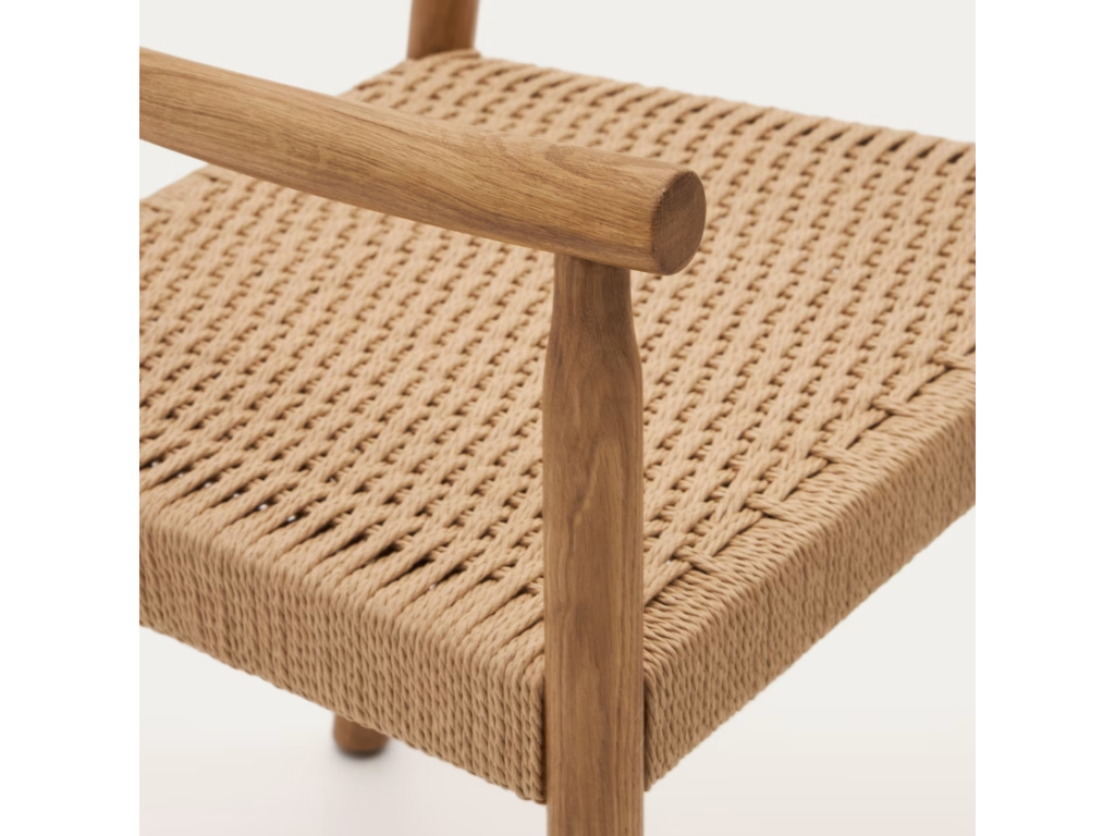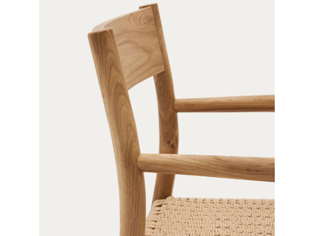 Vpusťte do vaší jídelny kousek přírody s židlí Yalia od značky Kave Home. Dubové dřevo s atraktivní kresbou v kombinaci s ručně tkaným výpletem váš interiér dokonale zútulní. Prostorný sedák se společně s vyššími područkami zaručeně postará o vaše pohodlí. Vychutnejte si své oblíbené jídlo v náručí této stylové židle – rázem bude jistě ještě chutnější! Vybrat si můžete hned ze tří barevných provedení této elegantní designovky a v interiéru ji můžete sladit s křeslem ze stejnojmenné série.