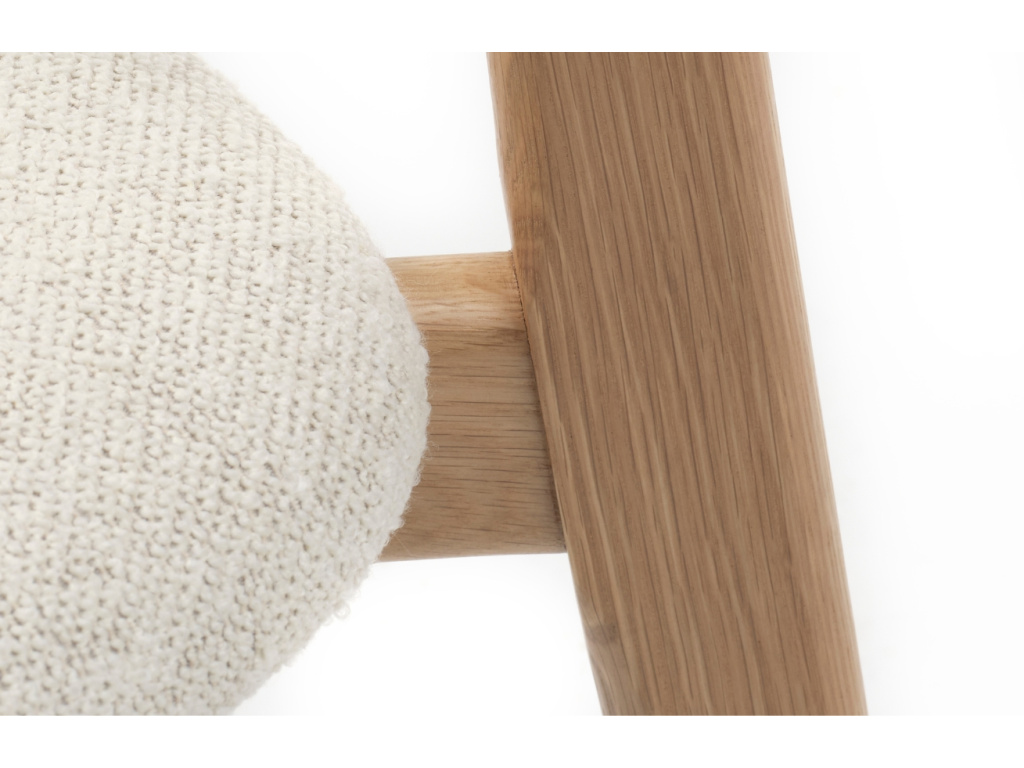 V jednoduchosti je krása. Tento fakt potvrzuje židle Elim od značky Unique Furniture, která zaujme svým jemným a čistým designem. Konstrukci z masivního dubového dřeva doplňuje sedák čalouněný bouclé látkou v bílé barvě, která vás neomrzí ani po hodinách sezení. Jemně strukturovaná látka na první pohled zútulní vaši jídelnu i kuchyňský kout a přinese s sebou nádech elegance. Židle Elim je ideální volbou pro ty, kteří hledají stylový a komfortní doplněk do jídelny nebo kuchyně.