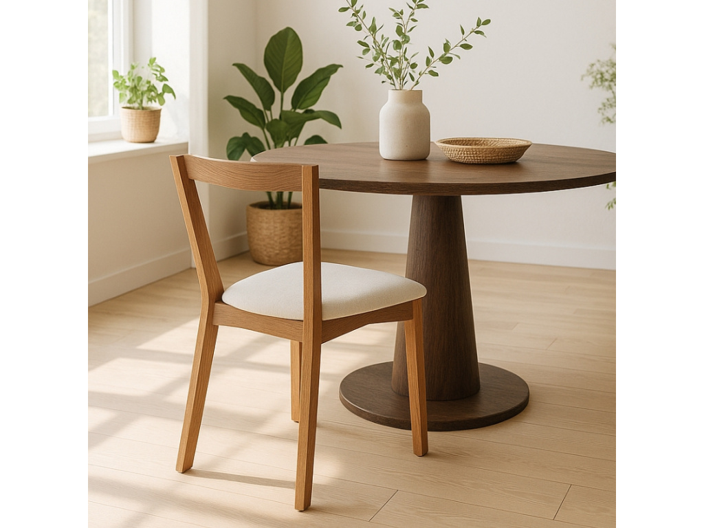 Jídelní židle Cee je dokonalou ukázkou toho, jak může jednoduchý design nabídnout pohodlí, styl i charakter. Její konstrukce z masivního dřeva s krásnou kresbou dodává interiéru přirozené teplo, zatímco geometricky tvarovaná opěrka zajišťuje stabilitu a vizuální lehkost. Sedák je měkce čalouněný bavlněnou látkou, která židli odlehčuje a zároveň ji činí příjemnou i pro delší posezení. Díky své nadčasovosti se Cee hodí ke kulatým i hranatým stolům, do scandi jídelen i do těch s retro nebo přírodním nádechem.