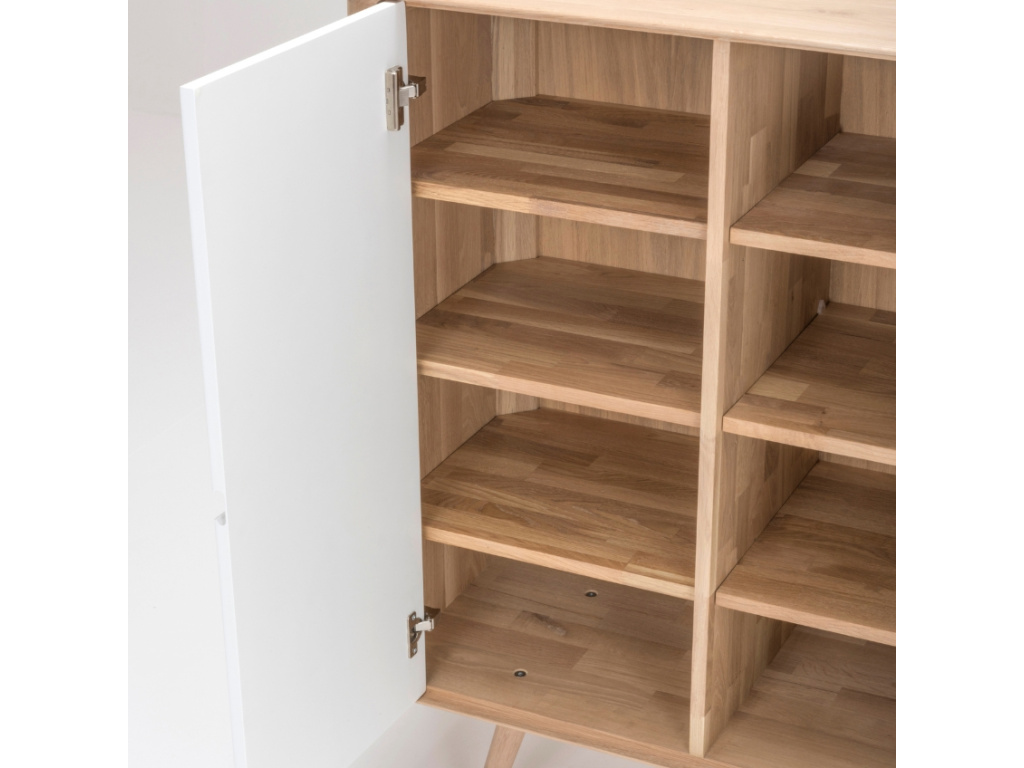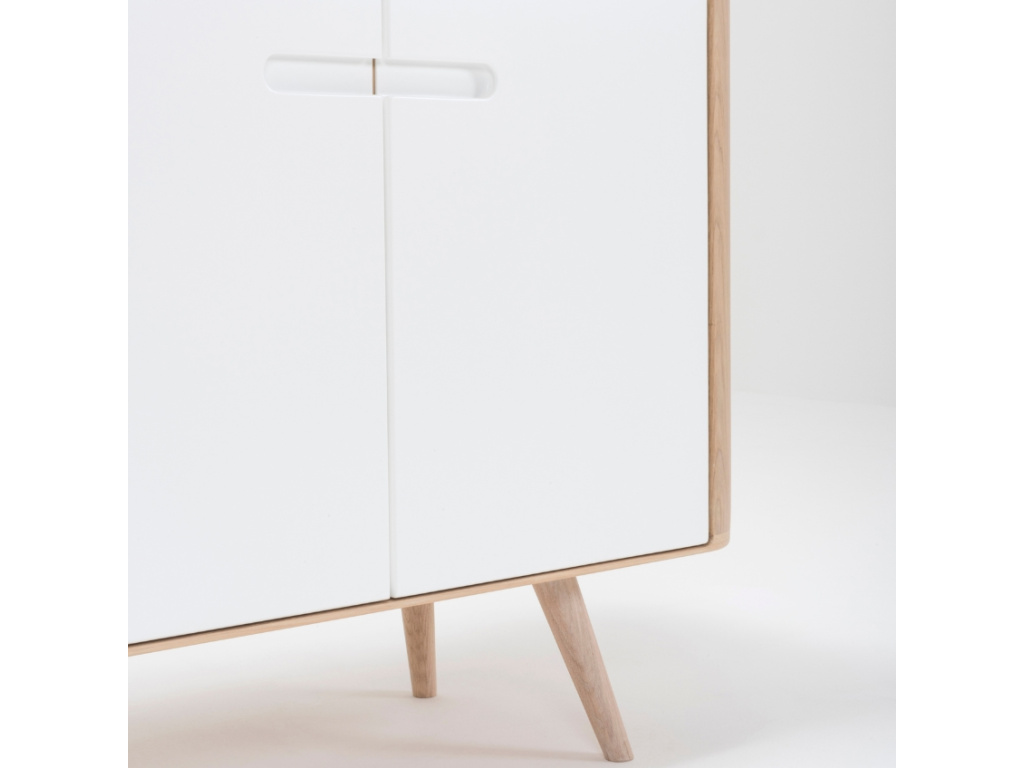 Komoda Ena od značky Gazzda v sobě propojuje nadčasový design a precizní zpracování s důrazem na každý detail. Její konstrukce je vyrobena z masivního naolejovaného dubového dřeva, která je doplněna o bílá dvířka z MDF. Tento elegantní kousek fantasticky zapadne do všech minimalistických či skandi interiérů. Série Ena nabízí i další úložné prostory v podobě TV stolků a komod – vytvořte si jedinečný set, který dodá vašemu domovu styl!