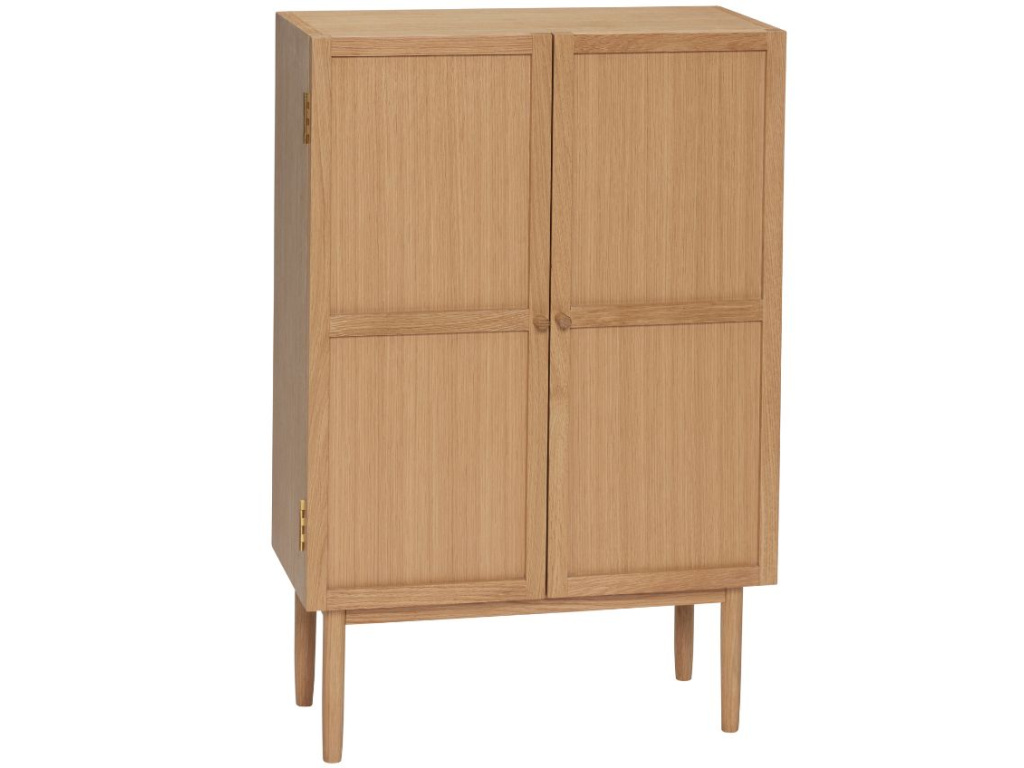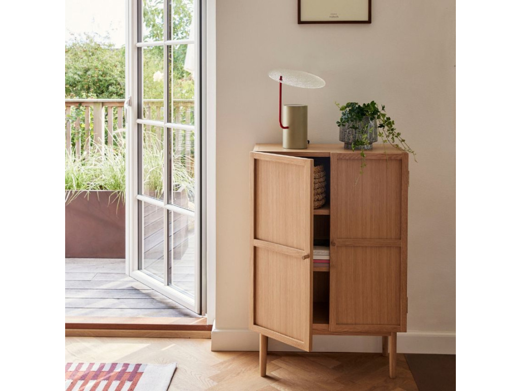 Komoda Candour značky Hübsch je vyrobena z dubové dýhy přírodní barvy, kterou doplňuje vyšší podnož z dubového dřeva. Slušet jí to bude v obývacím pokoji, kde ji můžete doplnit lampičkou a květinou. Díky jejím menším rozměrům se skvěle hodí i do chodby nebo předsíně – může sloužit k odkládání klíčů a jiných nezbytností. Candour nabízí úložný prostor v podobě tří uzavřených polic a její dvířka jsou ozvláštněny vystouplými okraji. Doporučujeme ji doplnit dalšími designovými kousky z přírodních materiálů.