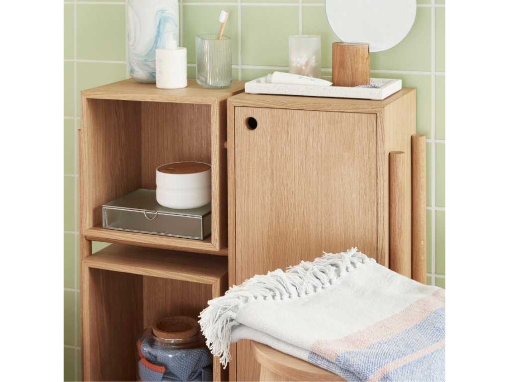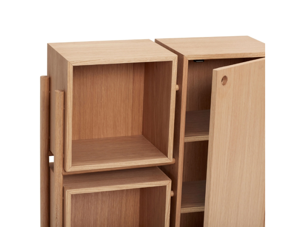 Milovníci jednoduchosti a přírodních materiálů zpozorněte! Okouzlující komoda Cube od dánské značky Hübsch nabízí úložný prostor v podobě dvou otevřených a tří uzavřených polic. Její konstrukce je vyrobena z dubové dýhy a dubového dřeva, takže fantasticky zapadne do scandi či rustikálně laděných domovů. Vystavte si na ni oblíbené vázy a jiné dekorace a kochejte se krásou svého interiéru!