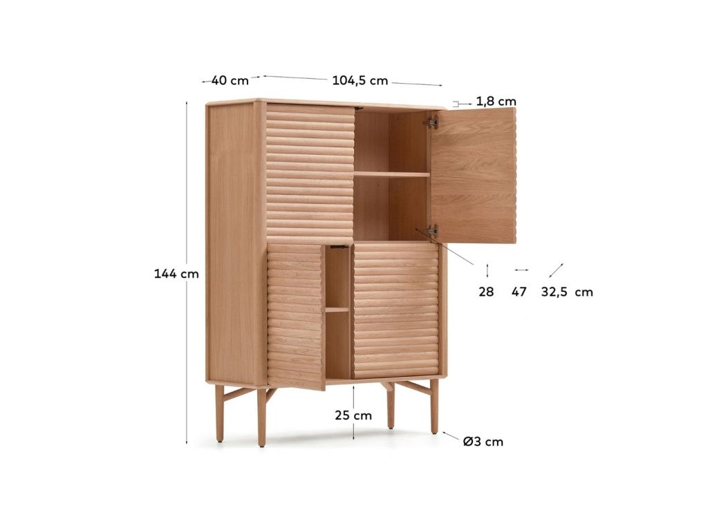Komoda Kave Home Lenon je nádherným designovým kouskem do moderních a skandinávských interiérů. Je vyrobená z masivního dubového dřeva a dubové dýhy. Komoda disponuje úložným prostorem v podobě osmi uzavřených polic, které jsou ukryty za čtyřmi dvířky. Materiál komody má certifikát FSC, který zaručuje šetrnou a ekologickou výrobu. Komoda bude vypadat skvěle především ve skandinávských interiérech s přírodními prvky.