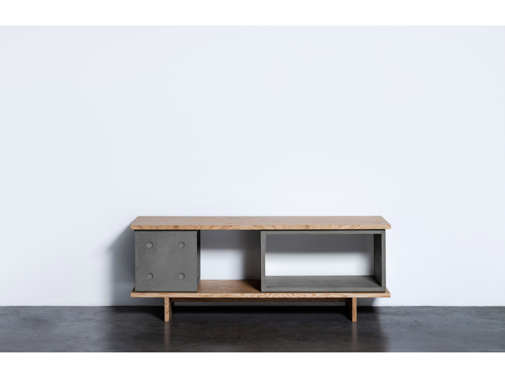 Alexandre Dubreuil rozšířil kolekci Dice také o standartní úložné prostory, jako je právě tato komoda. Surový beton v kombinaci s dubovou dýhou tvoří výjimečný kontrast i přesto, že se jedná o přírodní materiály. Design komody Dice je inspirován ikonickými komodami a stolky od přední francouzské architektky a designérky Charlotte Perriand. Dice je neuvěřitelně flexibilním řešením pro moderní interiéry, kde své využití najde nejen jako komoda, ale také třeba jako televizní nebo konferenční stolek.