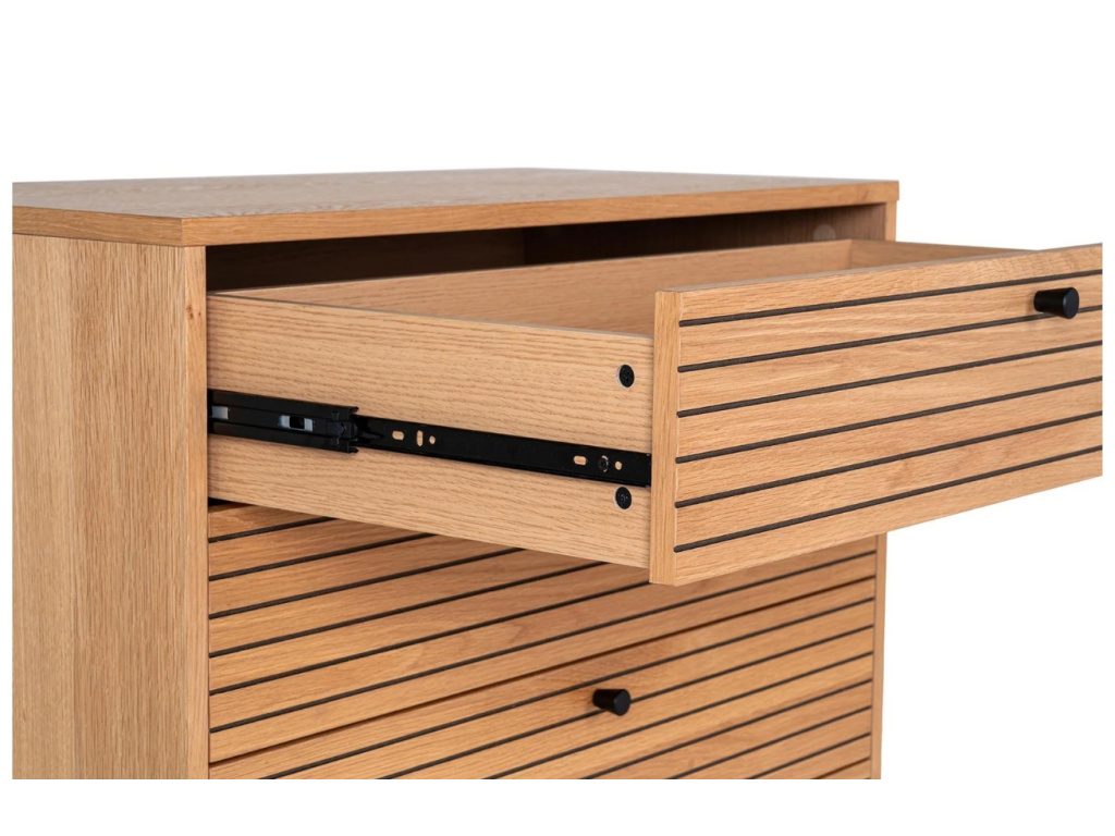 Designová komoda Serenity je skvělou volbou do rustikálního moderního interiéru s nádechem retra. Přírodní odstín dubové dýhy zútulní váš domov a dodá mu hřejivý dojem. Minimalistický tvar a stylové žebrování dělají z komody jedinečný kousek. Jistě oceníte její praktické úložné prostory tvořené 4 prostornými zásuvkami. Díky vyšší podnoži je navíc vhodná i do domácnosti s robotickým vysavačem. Pro dokonalé doladění prostoru doporučujeme komodu kombinovat s dalšími produkty řady Serenity.