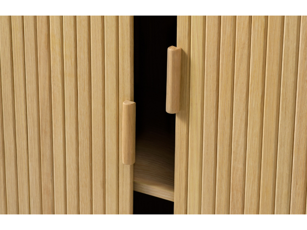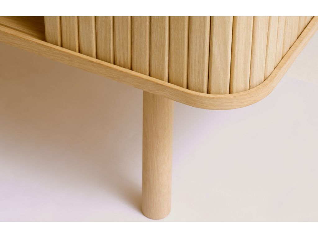Komoda Cavo od značky Unique Furniture bude estetickým a praktickým kouskem vašeho interiéru. Je vyrobena z masivního dubového dřeva a dubové dýhy. Cavo disponuje praktickým úložným prostorem ve formě tří polic, které jsou ukryty za posuvnými dvířky. Nechte se okouzlit spojením přírodního odstínu dřeva a jednoduchým funkčním designem s promyšlenými detaily! Designový motiv žebrování podtrhne celkový dojem komody a dodá ji unikátní vzhled.