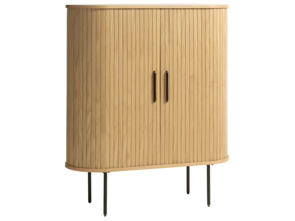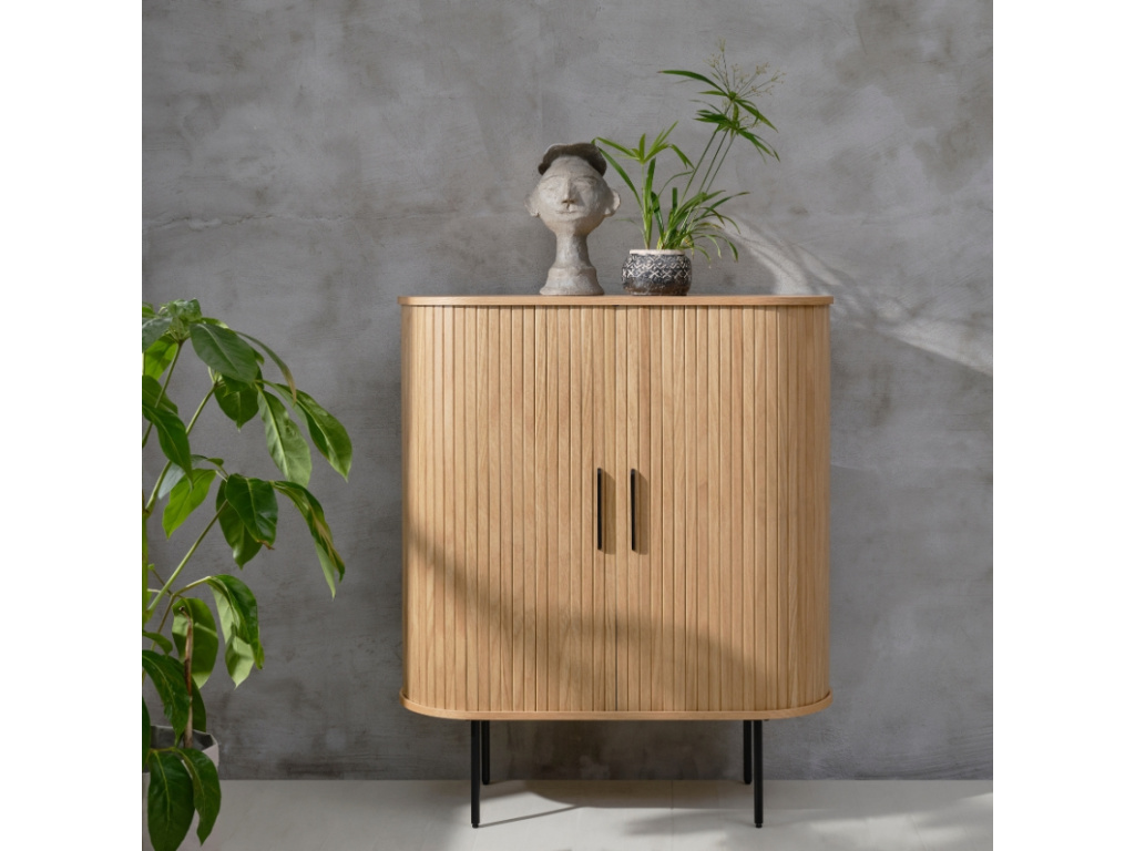 Komoda Nola od značky Unique Furniture vnese do vašeho domova moderní nádech a skandinávský styl. Nola se pyšní funkčním designem, který představuje nesmrtelnou kombinaci dřeva a kovu. Přírodní materiály spolu s černým kovem dodávají komodě patřičnou eleganci. Korpus je vyroben z dubové dýhy a doplňují ho posuvná dvířka s designovým motivem žebrování, za kterými je úložný prostor v podobě 5 polic. Pokud hledáte neobyčejný kousek do vašeho interiéru, Nola vás rozhodně nezklame. Můžete ji umístit do ložnice, obývacího pokoje i do chodby, zkrátka všude tam, kde potřebujete opravdu velkolepý úložný prostor. A pokud toužíte po sjednoceném interiéru, s produkty ze série Nola jistě neuděláte chybu. Komody jsou dostupné v několika různých rozměrech.