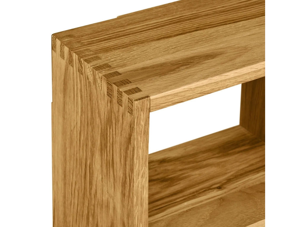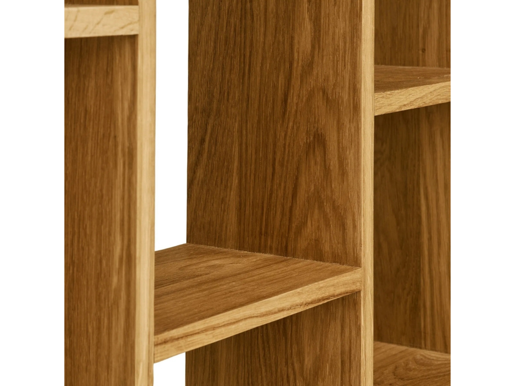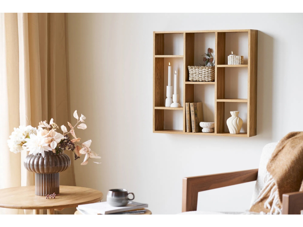 Dubová police Towny vnese do vašeho interiéru útulnost a přirozené teplo, které zjemní atmosféru místnosti. Promyšlené rozvržení polic přináší elegantní kompozici, jež přitáhne pozornost a zároveň nabídne praktické využití. Jemná kresba dubového dřeva zvýrazní přirozený charakter materiálu a podtrhne celkový vzhled prostoru. Díky své univerzálnosti se police snadno přizpůsobí modernímu, skandinávskému i minimalistickému stylu a dodá interiéru lehkost. Otevřený design umožní vystavit knihy, dekorace či rostliny tak, aby vynikla jejich krása a prostor získal osobitý charakter. Nadčasový vzhled zajistí, že se skvěle uplatní v obývacím pokoji, pracovně i ložnici jako elegantní a funkční dekorativní prvek.
