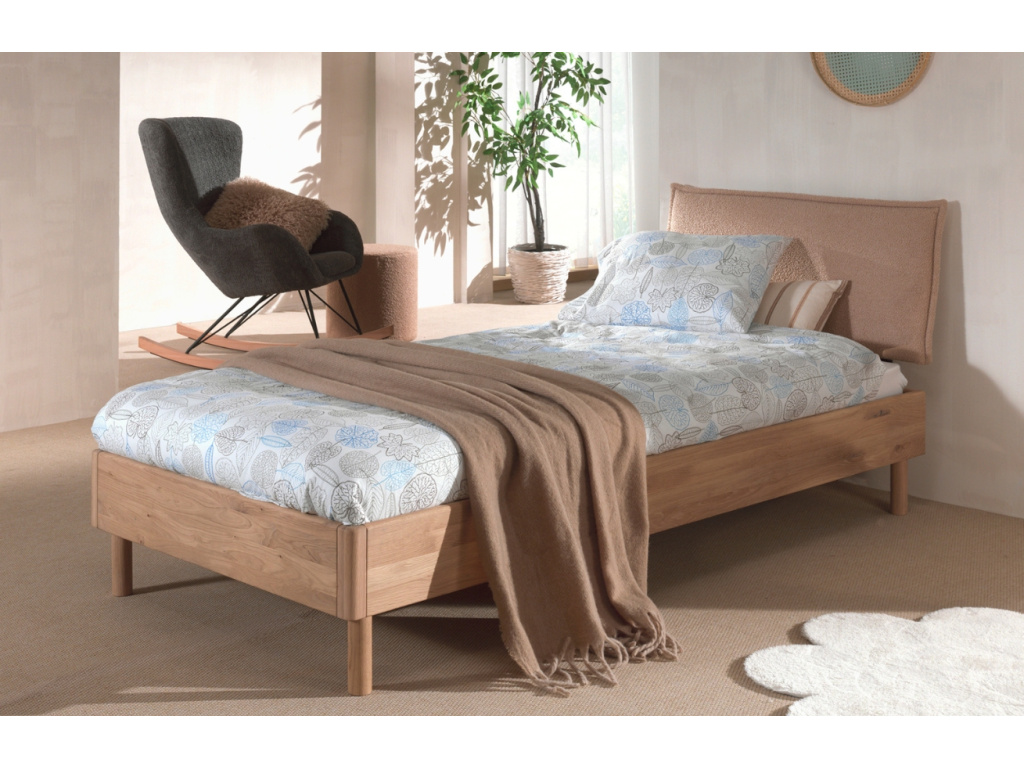 Postel Forrest je vyrobena z kvalitního evropského dubu s certifikací FSC. Masivní konstrukce garantuje perfektní stabilitu a odolnost, takže vydrží spoustu let a díky přírodnímu tónu snadno zapadne do každého dětského pokoje bez ohledu na věk. Pohodlí i ochranu zdi proti ošoupání zaručuje čelo, které je čalouněné texturovanou bouclé látkou v béžovém odstínu. Nábytek doporučujeme kombinovat s dalšími kousky z kolekce Forrest.