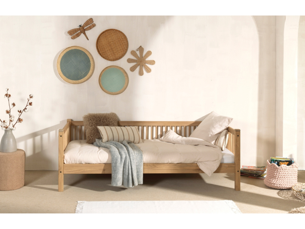 S postelí Forrest přinesete do dětského pokoje místo, které poslouží ke kvalitnímu odpočinku a navíc bude vypadat elegantně a moderně. Ze třech stran je orámována lamelovou zábranou, která slouží jako ochrana proti pádu a také poskytuje dítěti pocit bezpečí. Díky přírodnímu odstínu snadno zapadne do každého dětského pokoje bez ohledu na věk. Je vyrobena z kvalitního evropského dubu s certifikací FSC a doporučujeme ji kombinovat s dalšími kousky z kolekce Forrest – třeba s úložným prostorem v podobě prostorné zásuvky.