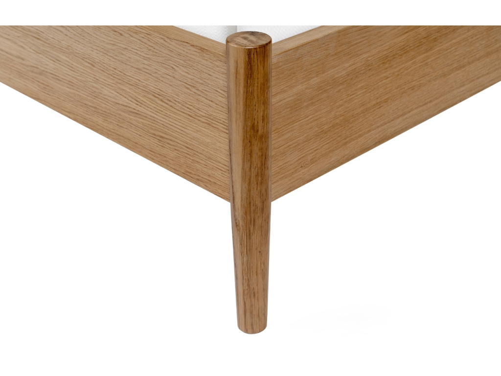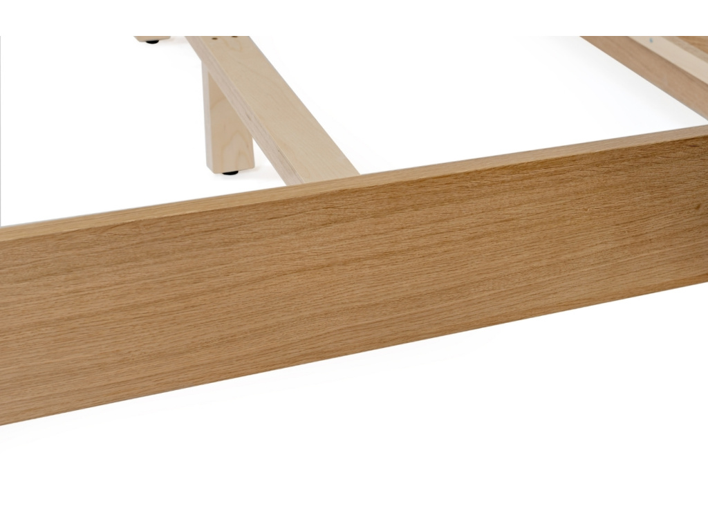 Stylový rám postele Farsta Herringbone od značky Woodman zaujme svým unikátním vzhledem. Čelo postele z dřevotřískové desky potažené dýhou v dubovém dekoru je doplněno originálním skládaným dekorem připomínající rybí kost a ten dodává celkovému vzhledu na atraktivitě. Podnož je vyrobená z masivního dubového dřeva a díky tomu je zajištěna perfektní stabilita. Postel se skvěle hodí především do rustikálních interiérů.