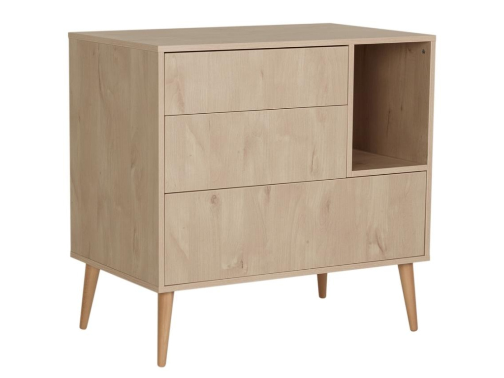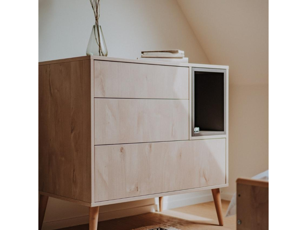 Moderní komoda Quax Cocoon je skvělou volbou do každého dětského pokoje. Moderní přírodní design a velké úložné prostory je ideální kombinace pro každou maminku, která chce mít vše důležité na jednom místě. Plenky, vlhčené ubrousky i oblečení se skvěle schová do tří prostorných zásuvek a poličky. Komodu lze využít samostatně nebo při dokoupení nástavby se z ní rázem stane přebalovací pult. Doporučujeme kombinaci více prvků z řady Cocoon, abyste vytvořili dokonalý kontrast a souhru v interiéru. Komoda Cocoon se skvěle hodí do minimalistických a skandinávských interiérů.