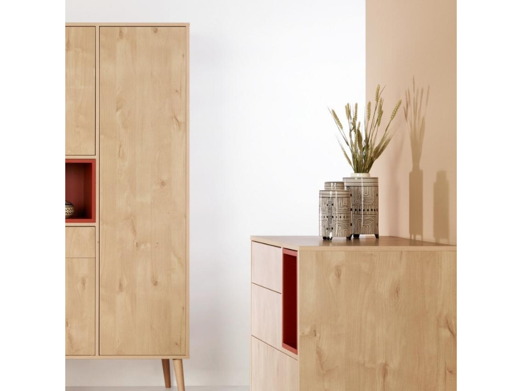 Moderní elegantní skříň Quax Cocoon je prostorným úložným místem na všechno dětské oblečení. Krásný jednoduchý vzhled s přírodními dvířky a korpusem z pevné MDF tvoří jemný kontrast s bukovou podnoží. Světlá barva a minimalistický design se bude skvěle hodit do skandinávských interiérů. Doplňte váš dětský pokoj o skvělý úložný prostor na dětské prádlo, plenky i botičky.