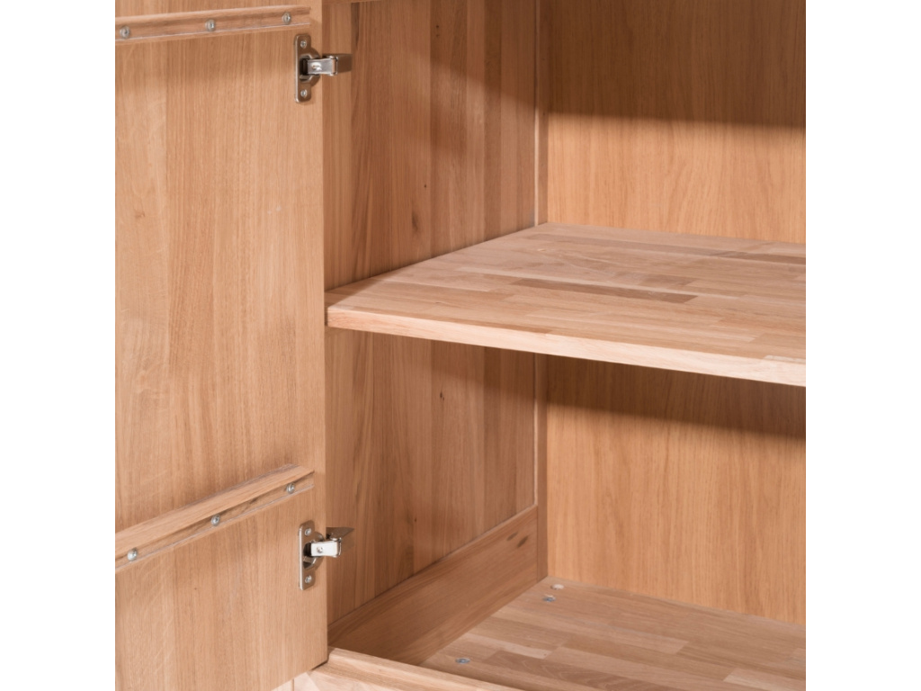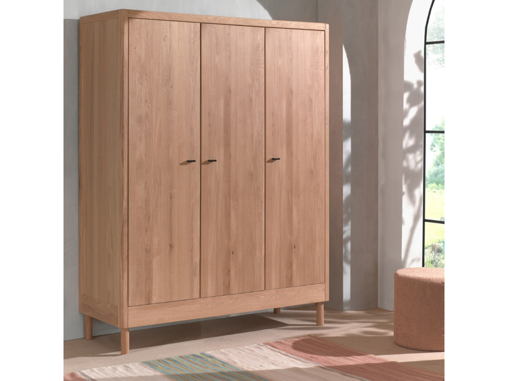 Třídveřová šatní skříň Forrest poskytuje dostatek úložného prostoru v podobě šatní tyče, prostorných polic a spodního úložného dílu. Dvířka se dovírají tiše díky systému soft-close. Korpus je vyroben z kvalitního evropského dubu s certifikací FSC, která zaručuje šetrný přístup k lesům a dává vám jistotu, že volíte nábytek s ohledem na přírodu i budoucí generace. Doporučujeme ji kombinovat s dalšími kousky z kolekce Forrest, s nimiž snadno vytvoříte harmonický a zároveň funkční dětský pokojík.