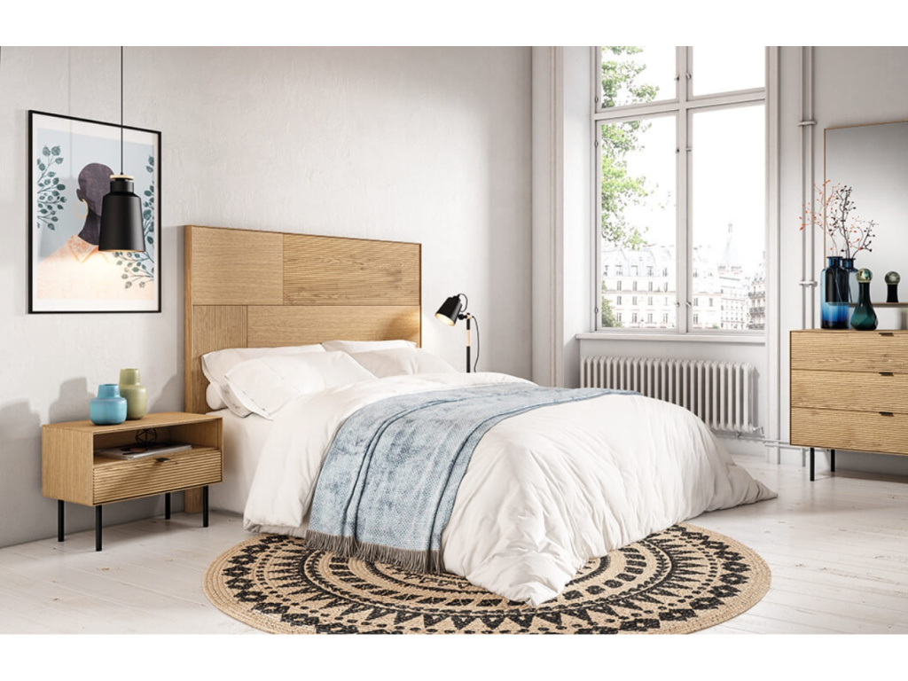 Postelové čelo TULSA od španělské značky Somcasa zaujme již na první pohled minimalistickým nadčasovým designem. Čelo i s podnoží je vyrobeno z dubové dýhy a na přední straně si můžete všimnout dvou pruhovaných panelů, které jsou z dubového masivu. Hladký a vroubkovaný povrch jdou skvěle dohromady a vytvářejí dokonalý kontrast. Čelo vkusně doplní vaši postel i interiér a obohatí ho o moderní svěží doplněk. Pokud chcete svůj byt vyladit k dokonalosti, doporučujeme ho kombinovat s ostatními produkty ze stejnojmenné kolekce.