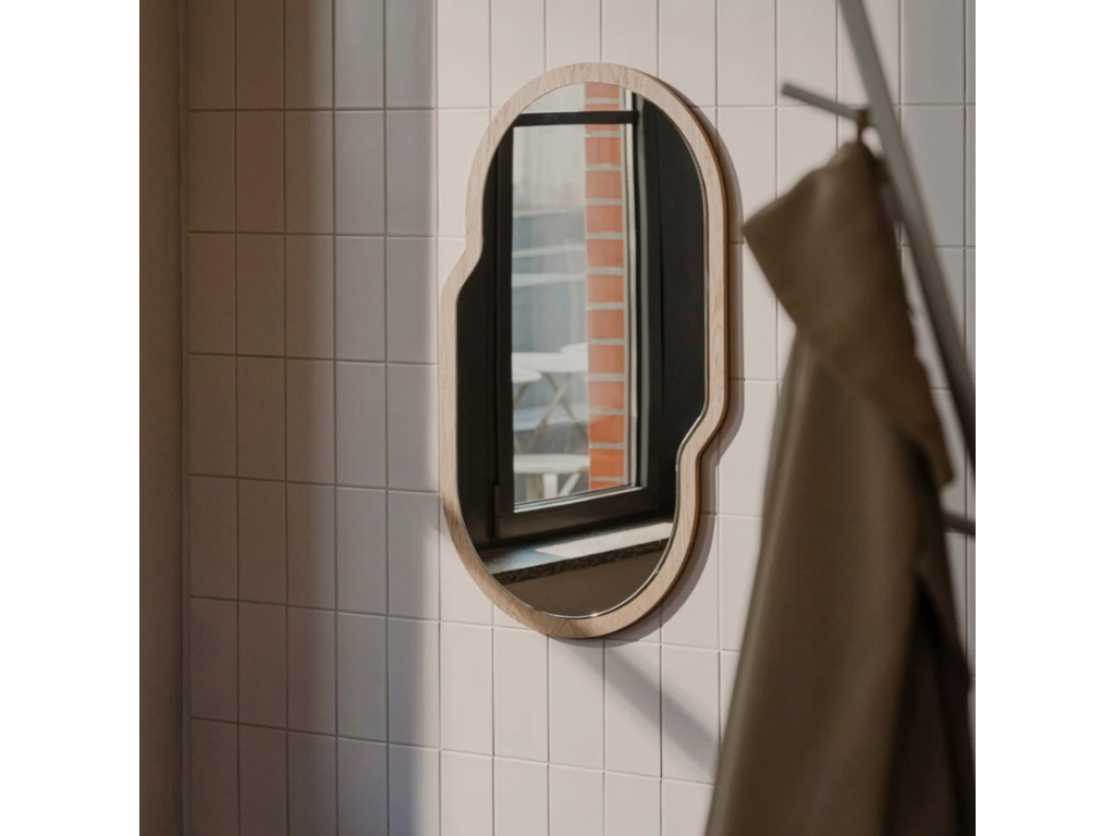 Závěsné zrcadlo Tafla od značky Noo.ma je praktickým i stylovým kouskem, který doladí každý moderní interiér. Netradiční geometrický tvar rámu z dubové dýhy padne jako ulitý do vašeho pokoje, vaší ložnice i chodby. Zrcadlo si navíce můžete pověsit vertikálně i horizontálně, takže s výběrem místa pro tento designový kousek si nemusíte dělat starosti.