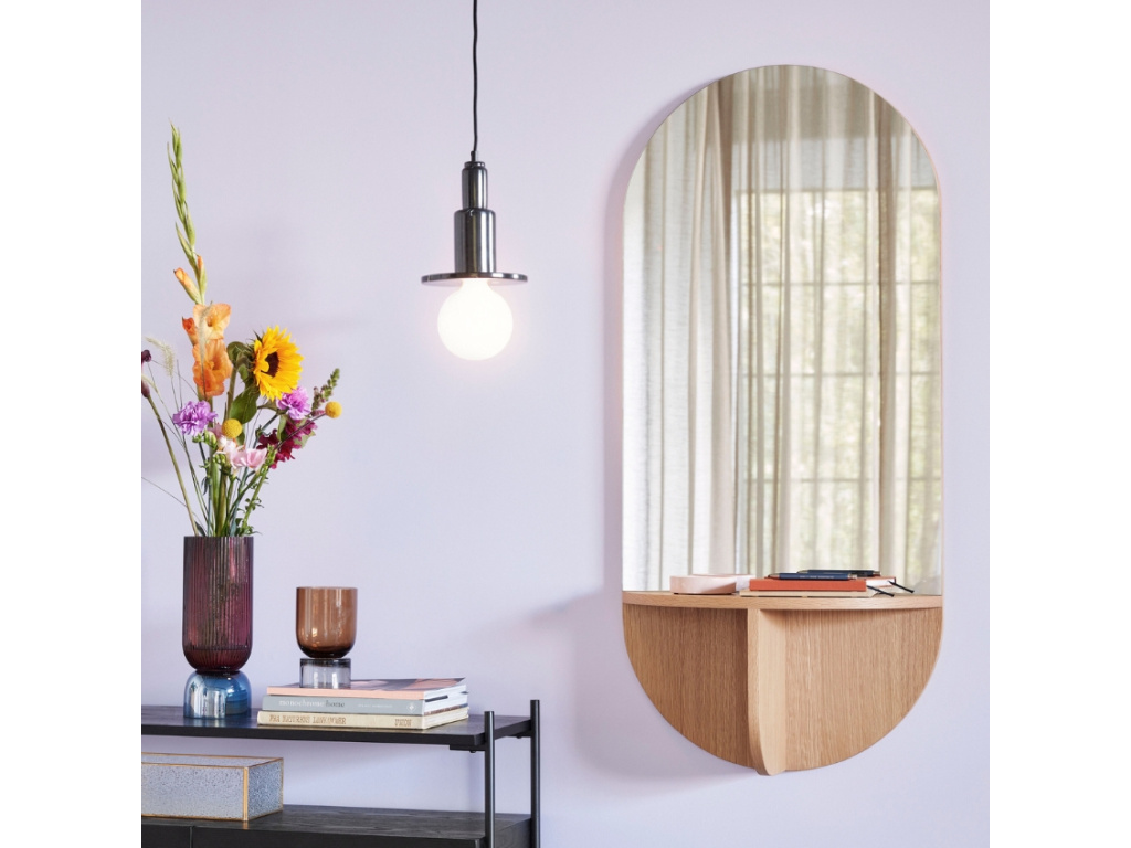 Elegantní závěsné zrcadlo Nomad představuje díky odkládací poličce opravdu praktický kousek. Skvěle se hodí do chodby či předsíně, kde díky němu budete moci zkontrolovat svůj vzhled a zároveň si na něj odkládat klíče a další drobnosti. Nomad pochází ze stejnojmenné kolekce nábytku, jejíž kousky se budou v interiéru dokonale doplňovat. Najdete v ní věšáky, police i podstavce pod květiny – které kousky najdou ve vaší domácnosti své místo?