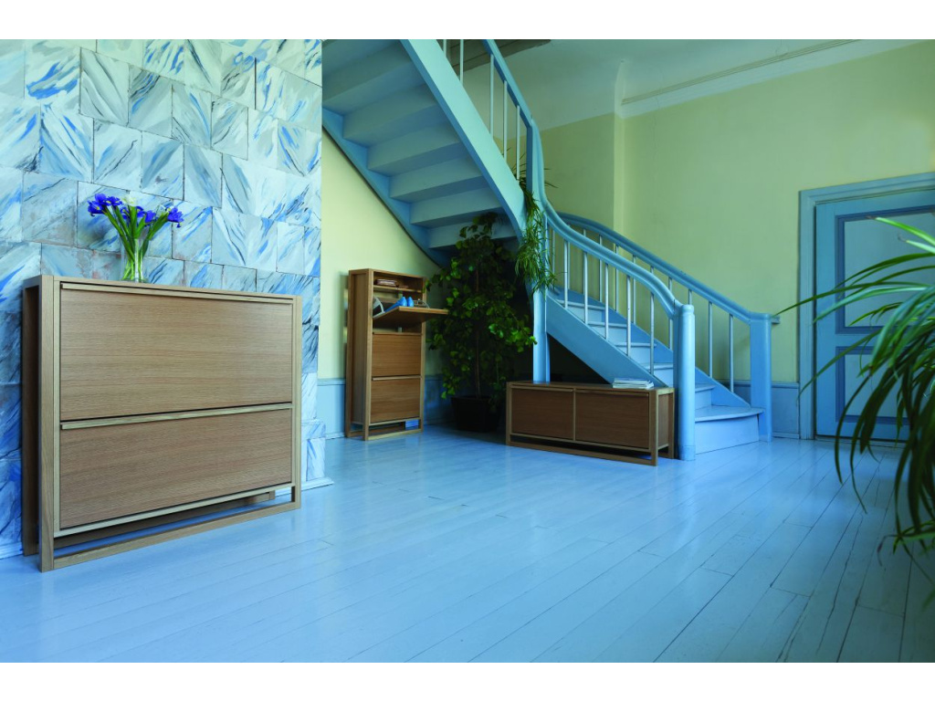 Krásný nízký botník Woodman Newest se stane nepřehlédnutelným a stylovým kouskem vaší chodby nebo zádveří. Oživte svůj prostor s tímto botníkem, který nabízí dostatek úložného prostoru až pro 10 párů bot. Korpus je vyroben z dřevotřískové desky potažené přírodní dubovou dýhou a celý je podepřen podnoží z masivního dubového dřeva. Tento botník si velice oblíbíte pro jeho čistý přírodní design, který nijak nezatěžuje prostor a naopak skvěle doladí váš interiér.