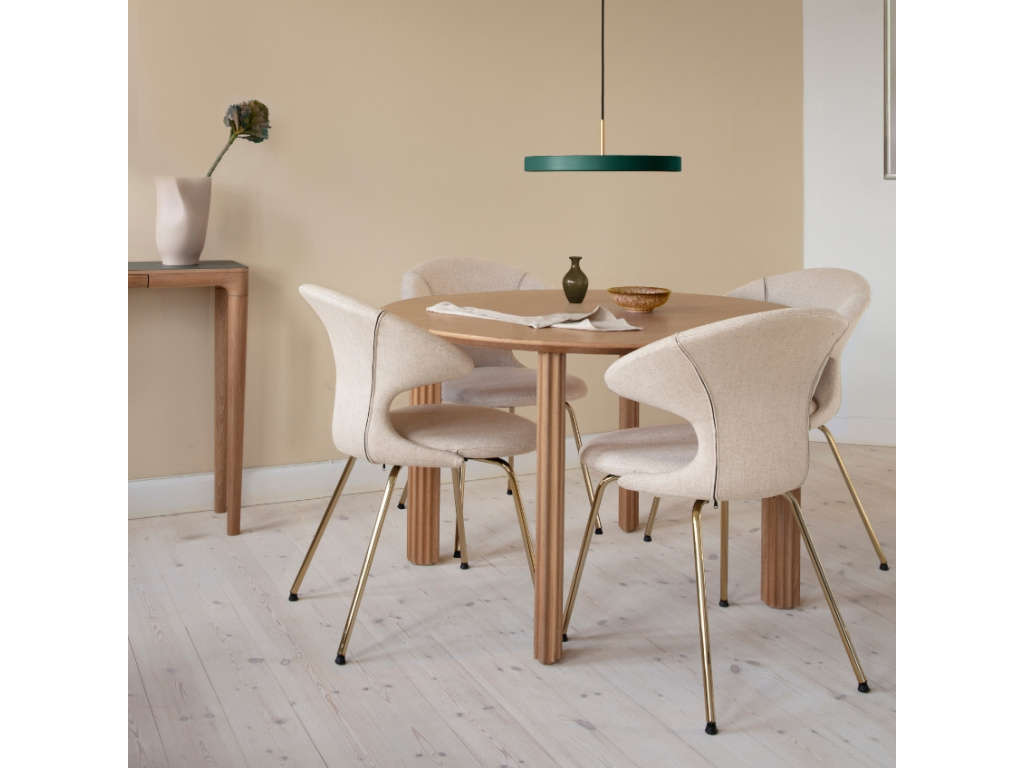 Jídelní stůl Comfort Circle od Umage je ztělesněním nadčasové elegance a precizního řemeslného zpracování. Jeho jemně zaoblená deska a výrazná žebrovaná podnož přinášejí do interiéru sofistikovaný design s jemným skandinávským akcentem. Je dostupný ve třech barevných provedeních, a tak se snadno přizpůsobí různým stylům jídelních prostor a stane se dominantním prvkem každé místnosti. Díky kulatému tvaru podporuje příjemnou atmosféru u stolu, ať už při rodinných večeřích nebo posezení s přáteli. Comfort Circle spojuje estetiku s funkčností a povyšuje každodenní stolování na výjimečný zážitek.