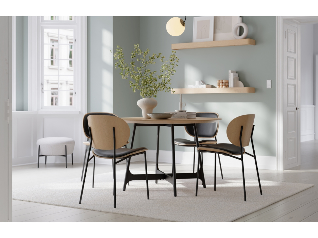 Kulatý jídelní stůl Ooid značky DAN-FORM zaujme svým neotřelým designem, který skvěle zapadne do skandinávsky laděných interiérů. Díky zajímavě tvarované podnoži z lakovaného kovu a svým zkoseným hranám působí deska stolu velice vzdušným a elegantním dojmem. Dopřejte vaší jídelně svěží a útulný nádech s tímto prostorným krasavcem - v jeho společnosti budou oblíbené rodinné recepty rázem chutnat ještě o něco lépe.