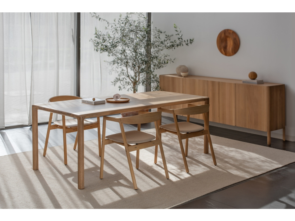 Jídelní stůl Derven od značky Gazzda vnese do vašeho domova klid a nadčasovou eleganci. Je vyroben z masivního dubu a díky jemně zaobleným hranám působí přirozeně a útulně. Každý detail je promyšlený – od měkkých přechodů a harmonických proporcí až po pevnou konstrukci se skrytými výztuhami, které chrání dřevo před změnami vlhkosti.