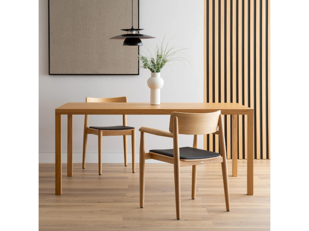 Jídelní stůl Fino, vyrobený z kvalitního dubového masivu, je jako stvořený pro elegantní minimalistické interiéry. Kombinace kvalitního zpracování a přírodního materiálu z něj dělají nadčasový kousek, který nejde nemilovat. Pokud máte rádi jednoduché linie, symetrii a minimalismus, pak je to stůl přímo pro vaši jídelnu! Dostupný je navíc také v černé barvě.