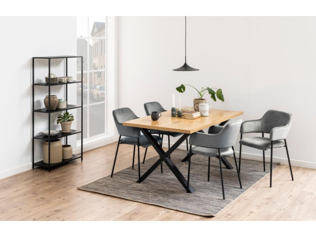 Velký jídelní stůl Gamble bezpochyby splní svůj účel a nabídne široký prostor pro celou rodinu. Deska z dubového dřeva bude vaší jídelně jen lichotit a zaplaví ji vlnou elegance a domácí pohody. Černě lakovaná kovová podnož do tvaru "X" podtrhne celkový dojem stolu. Moderní stůl promění interiér v místo, kde bude vládnout příjemná rodinná atmosféra a osobitá elegance.
