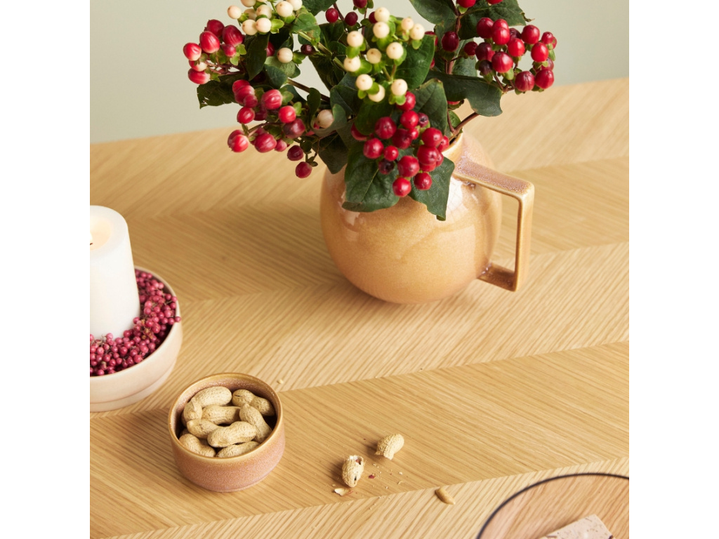 Hledáte nový jídelní stůl? Jídelní stůl Herringtone z dubové dýhy vás zaujme svým čistým designem a okamžitě se stane dominantou jakéhokoliv prostoru. Jeho přírodní odstín zútulní domov a skvěle doladí moderní i klasický interiér. Zkrášlete svou jídelnu či kuchyni tímto neodolatelným kouskem – hodit se bude do skandinávsky i rustikálně laděných interiérů. Nabízíme ho i v menší velikosti!