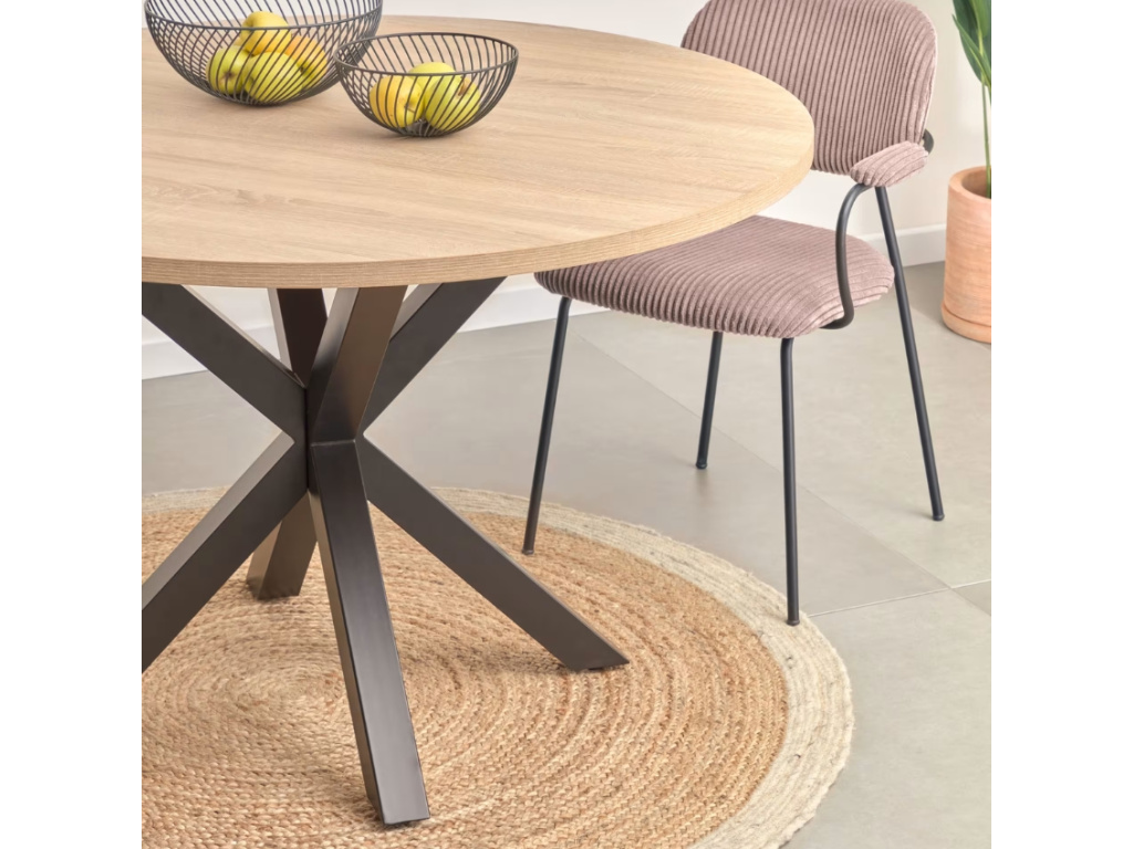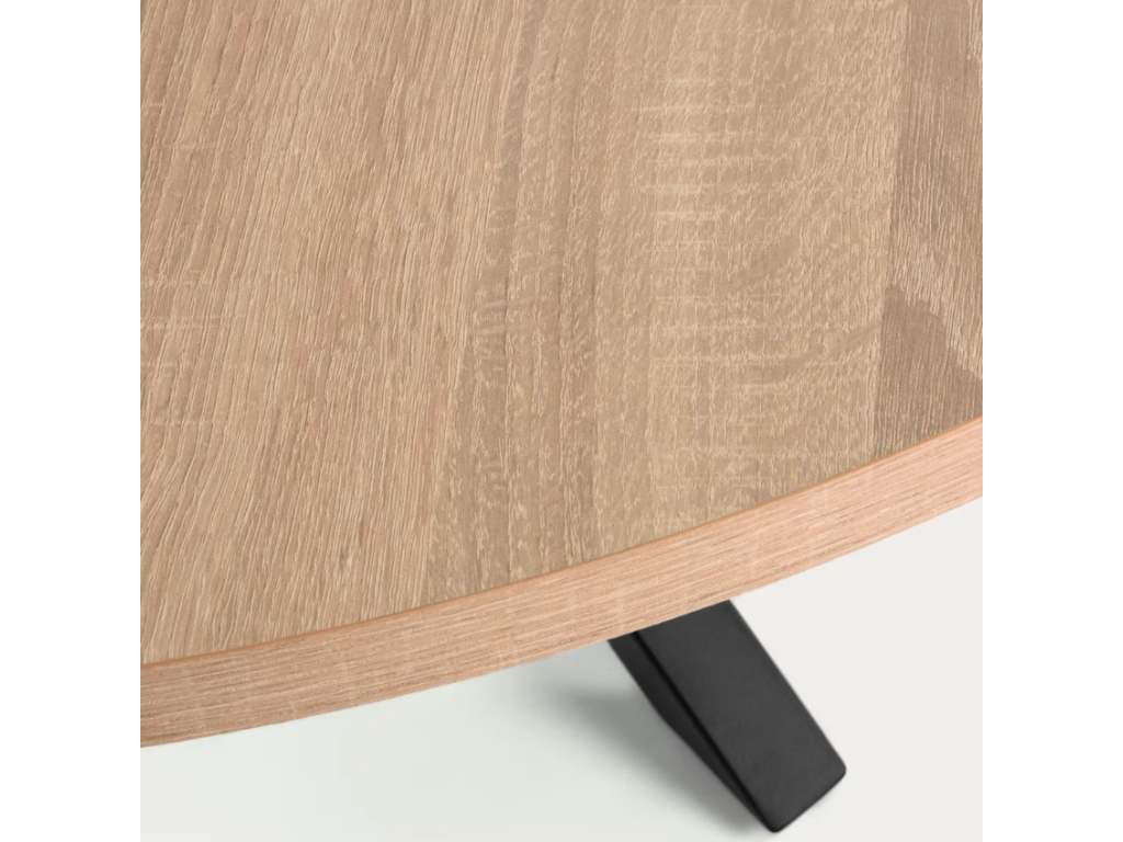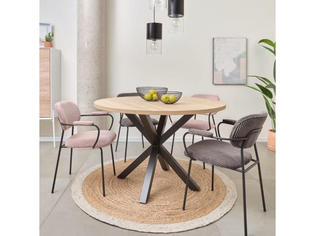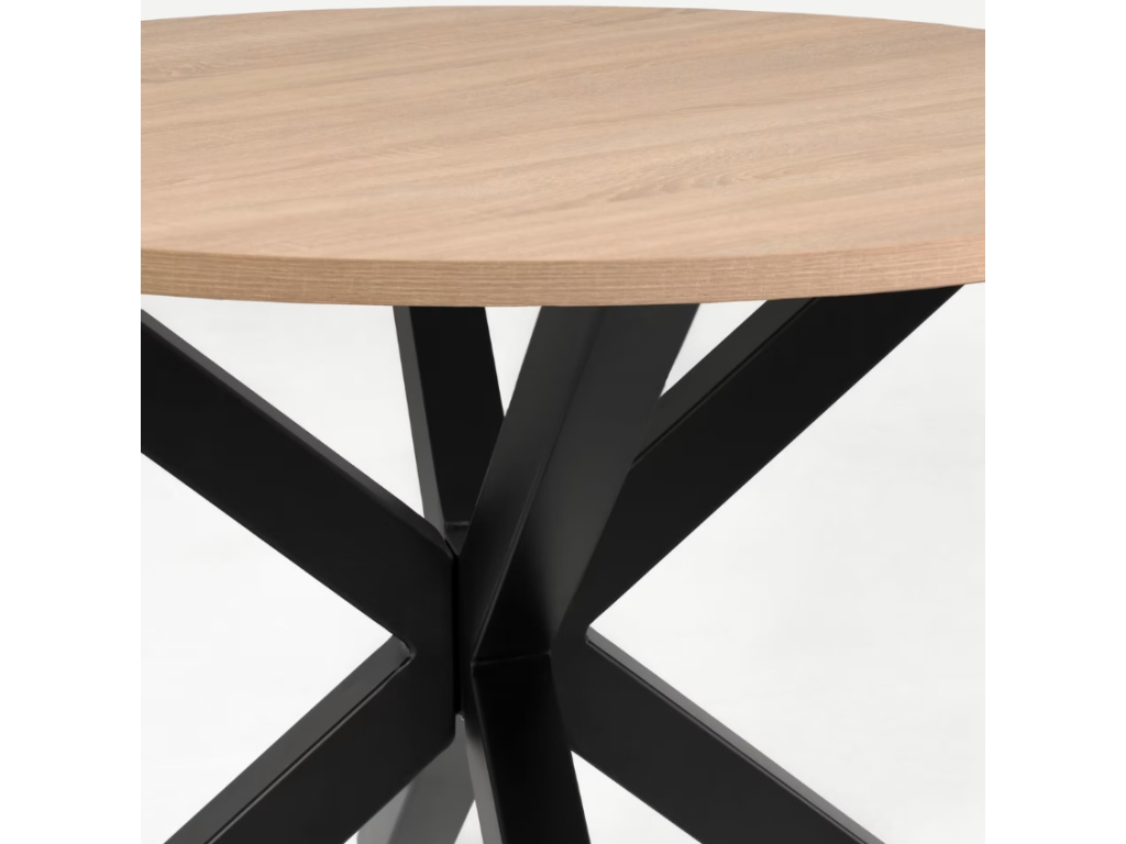 Krásný a nadčasový kulatý jídelní stůl Kave Home Argo vás na první pohled zaujme svým originálním a propracovaným designem. Podnož zajišťující perfektní stabilitu je vyrobena z černě lakované oceli a má zajímavý tvar připomínající hvězdu. Desku tvoří lakované MDF v přírodním odstínu a skvěle se s podnoží doplňuje. Tento jídelní stůl se bude vyjímat zejména v moderních interiérech.