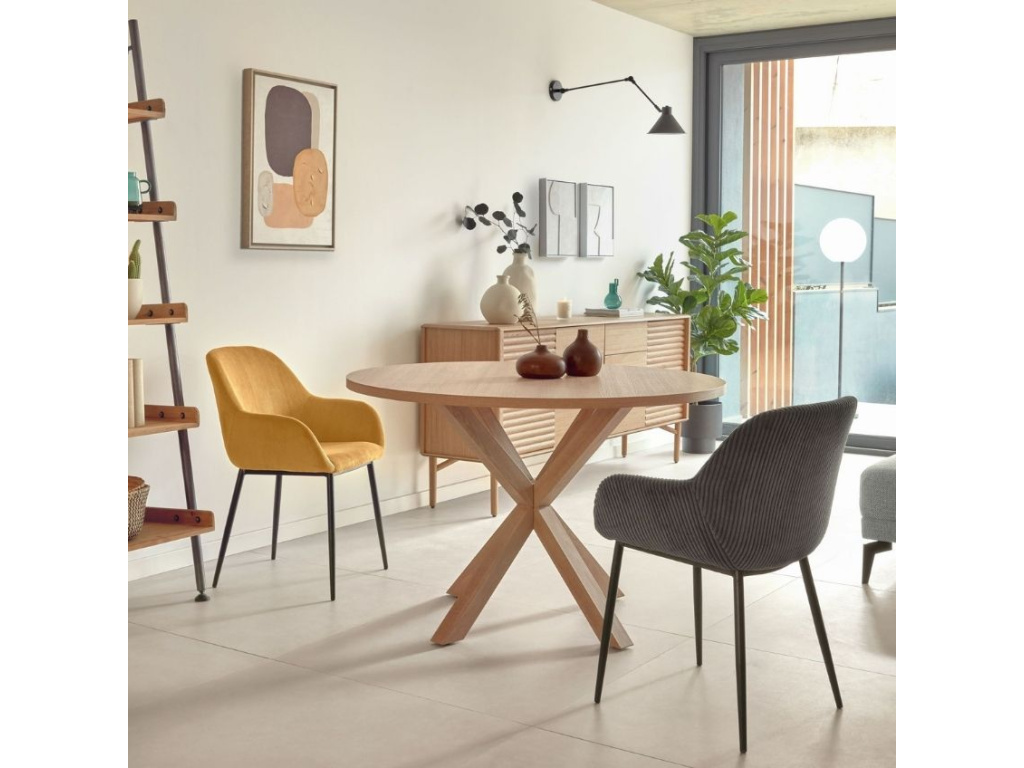 Podívám seDubový jídelní stůl Kave Home Argo 120 cm s přírodní kovovou podnoží