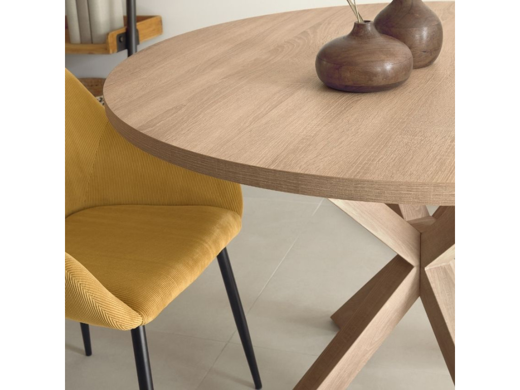 Krásný a nadčasový kulatý jídelní stůl Kave Home Argo vás na první pohled zaujme svým originálním a propracovaným designem. Jeho podnož je vyrobena z oceli v dekoru přírodního dřeva a má zajímavý tvar připomínající hvězdu. Zajišťuje perfektní stabilitu a navíc každého na první pohled zaujme. Desku tvoří přírodně zbarvený laminát, který podnož perfektně doplňuje. Tento jídelní stůl se bude vyjímat zejména v moderních interiérech.