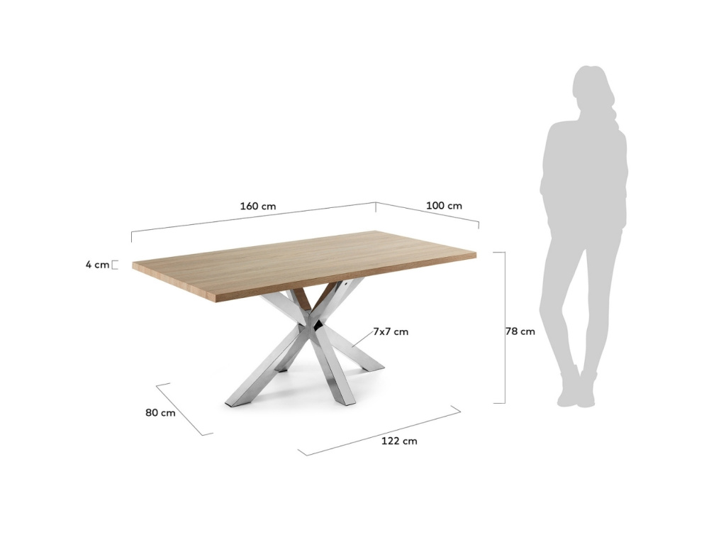 Dubový jídelní stůl Kave Home Argo 160 x 100 cm s nerezovou podnoží