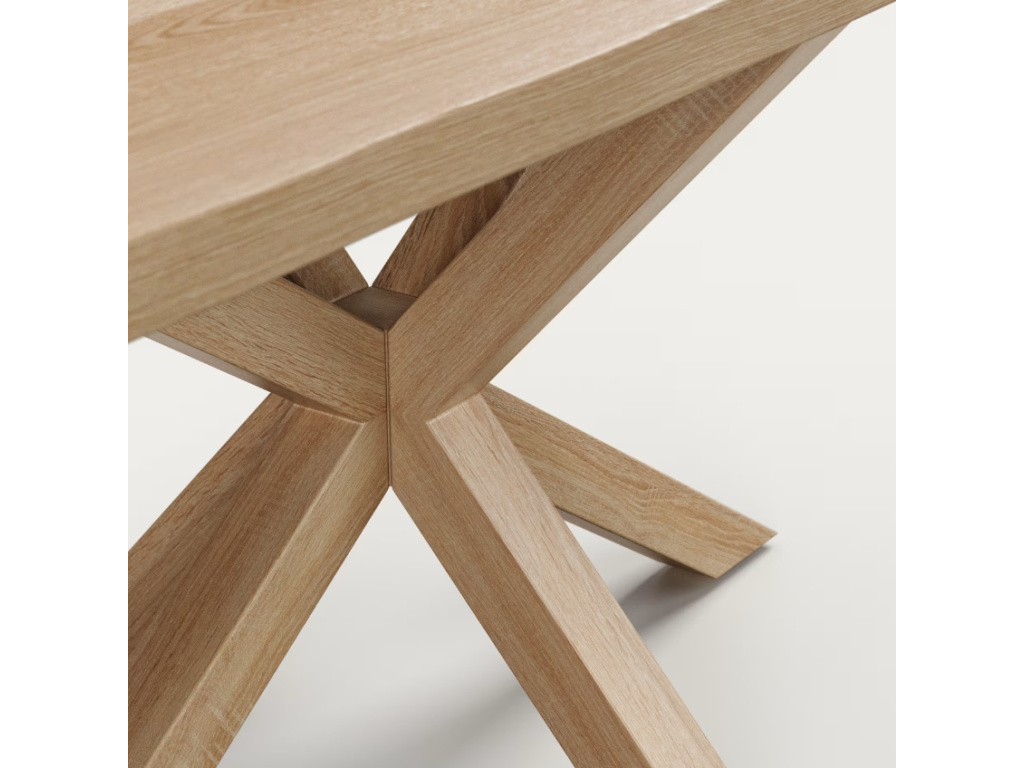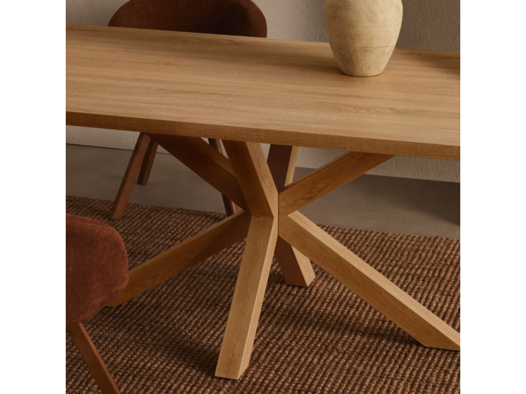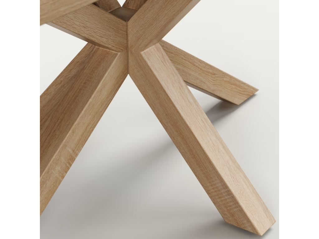 Krásný a nadčasový jídelní stůl Kave Home Argo se pyšní svým originálním a propracovaným designem. Jeho kovová podnož v dekoru přírodního dřeva připomínající hvězdu zajišťuje perfektní stabilitu a navíc každého na první pohled ihned zaujme. Deska je z laminátu a také v přírodním dekoru, takže s podnoží dokonale ladí. Stůl se bude výborně vyjímat v interiérech zařízených do skandinávského nebo rustikálního stylu.