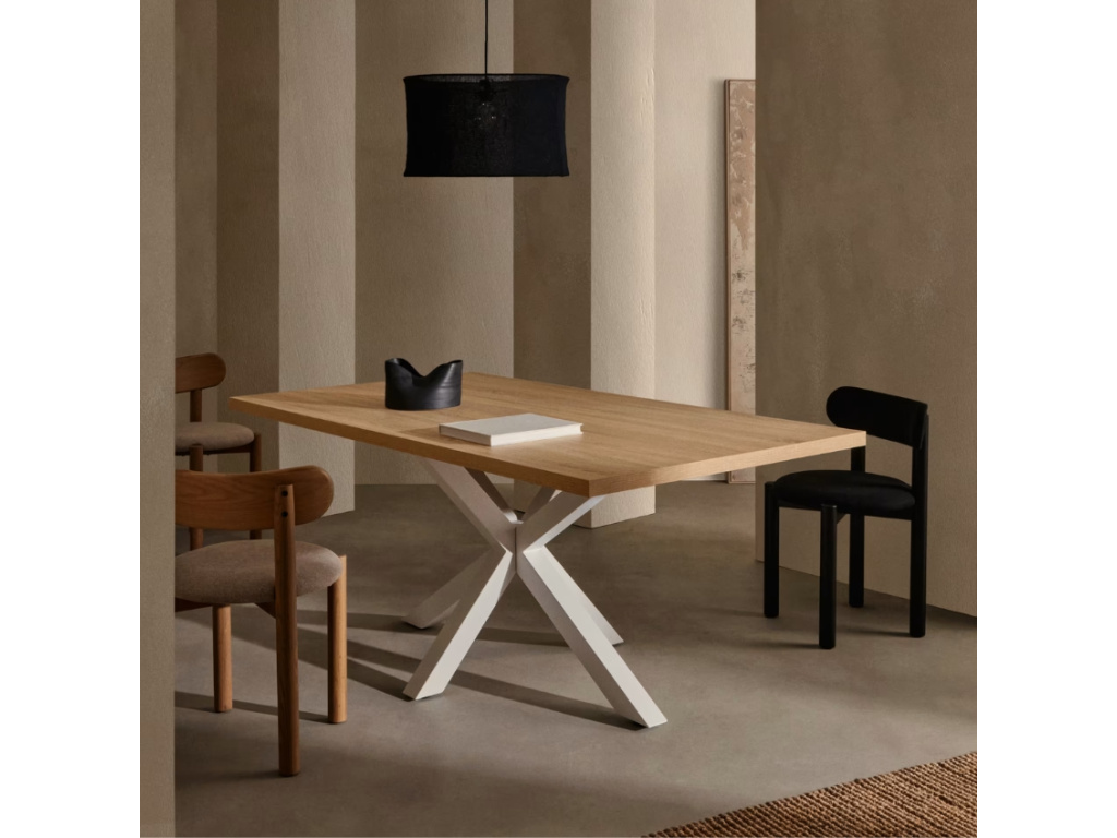 Podívám seDubový jídelní stůl Kave Home Argo 180 x 100 cm s bílou kovovou podnoží