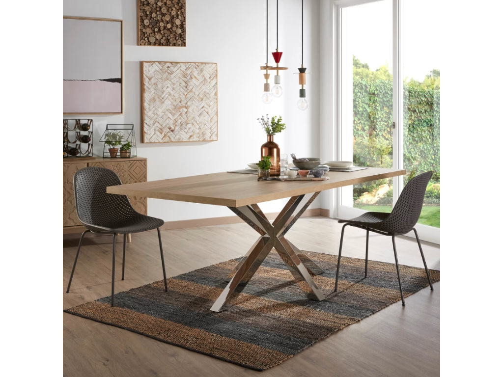 Krásný a nadčasový jídelní stůl Kave Home Argo se pyšní svým originálním a propracovaným designem. Jeho ocelová podnož připomínající hvězdu zajišťuje perfektní stabilitu a navíc každého na první pohled ihned zaujme. Deska je z laminátu v přírodním dekoru a skvěle se s podnoží doplňuje. Stůl se bude vyjímat v každém moderním interiéru – od skandinávského po industriální styl.