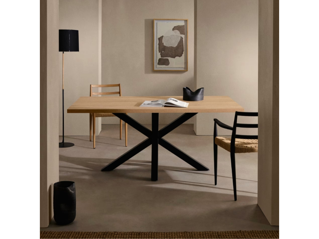 Podívám seDubový jídelní stůl Kave Home Argo 200 x 100 cm s černou kovovou podnoží