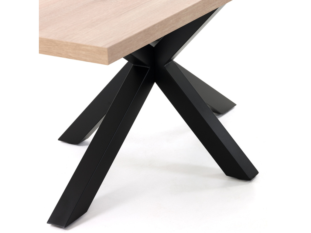 Krásný a nadčasový jídelní stůl Kave Home Argo vás na první pohled zaujme svým originálním a propracovaným designem. Podnož zajišťující perfektní stabilitu je vyrobena z černě lakované oceli a má zajímavý tvar připomínající hvězdu. Desku tvoří lakované MDF v přírodním odstínu a skvěle se s podnoží doplňuje. Tento jídelní stůl je díky svým rozměrům skvělou volbou zejména pro početnější rodiny.