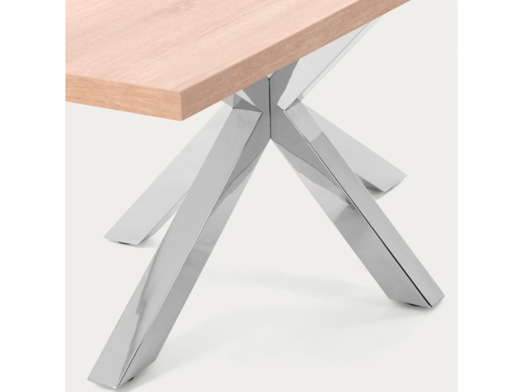 Krásný a nadčasový jídelní stůl Kave Home Argo se pyšní svým originálním a propracovaným designem. Jeho ocelová podnož připomínající hvězdu zajišťuje perfektní stabilitu a navíc každého na první pohled ihned zaujme. Deska je z laminátu v přírodním dekoru a skvěle se s podnoží doplňuje. Stůl se bude vyjímat v každém moderním interiéru – od skandinávského po industriální styl.