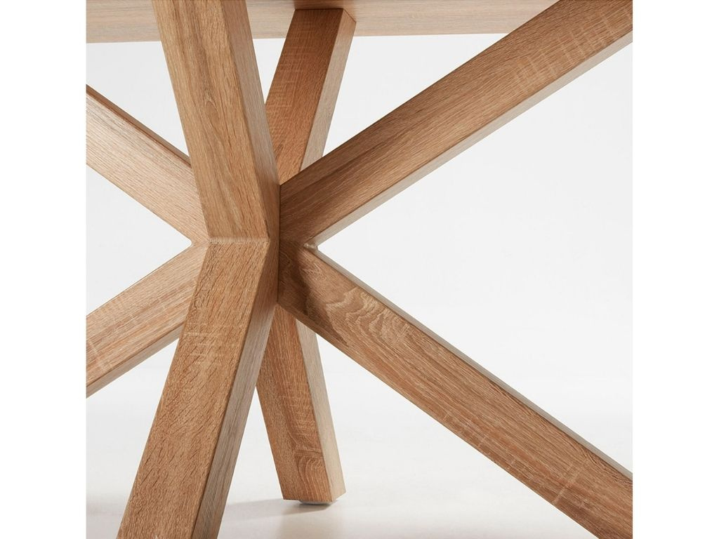 Krásný a nadčasový jídelní stůl Kave Home Argo vás na první pohled zaujme svým originálním a propracovaným designem. Jeho ocelová podnož v přírodním dřevěném dekoru má zajímavý tvar připomínající hvězdu. Zajišťuje perfektní stabilitu a navíc každého na první pohled zaujme. Desku tvoří přírodně zbarvený laminát a skvěle se s podnoží doplňuje. Tento jídelní stůl se bude vyjímat zejména v moderních interiérech.