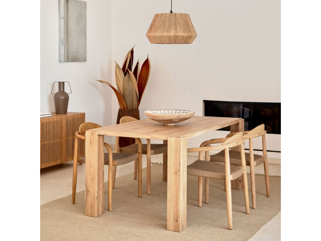 Robustní jídelní stůl Kave Home Deyanira je ručně vyráběn z přírodních materiálů tak, aby dal vyniknout jedinečným tónům a texturám. Zaujme svou členěnou deskou a širokou masivní podnoží. Skvěle se hodí do přírodně laděných interiérů. Jeho přirozený vzhled je nadčasový a nikdy se neomrzí - přesvědčte se o tom i vy. Vybrat si můžete ze tří různých rozměrů.