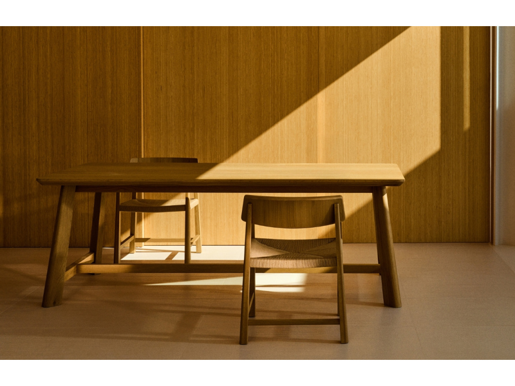 Designový jídelní stůl Idun promění váš interiér v prostor plný sofistikované harmonie. Jeho deska z dubové dýhy v přirozeném tónu odhaluje jedinečnou texturu dřeva, zatímco masivní dubová konstrukce dodává pevnost a stabilitu. Šikmá podnož s příčkou inspirovanou klasickými psacími stoly zajišťují nejen vizuální lehkost, ale i spolehlivou oporu. Díky lakování na vodní bázi si dřevo zachovává svou přirozenou krásu a odolnost, což usnadňuje údržbu. Stůl je navíc vybaven nastavitelnou podnoží, která se postará o dokonalou stabilitu i na nerovných podlahách. Vyrobený ze 100% certifikovaného dřeva FSC, Idun v sobě spojuje nadčasovou estetiku s respektem k přírodě. Pro dokonalé sladění interiéru ho můžete doplnit jídelní židlí ze stejnojmenné kolekce.