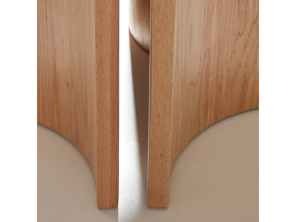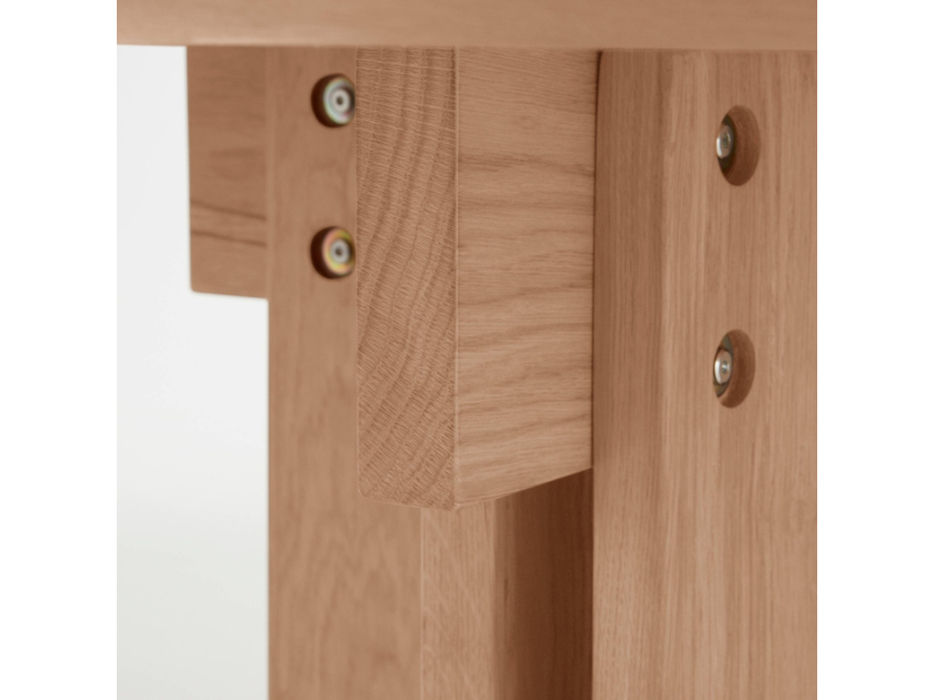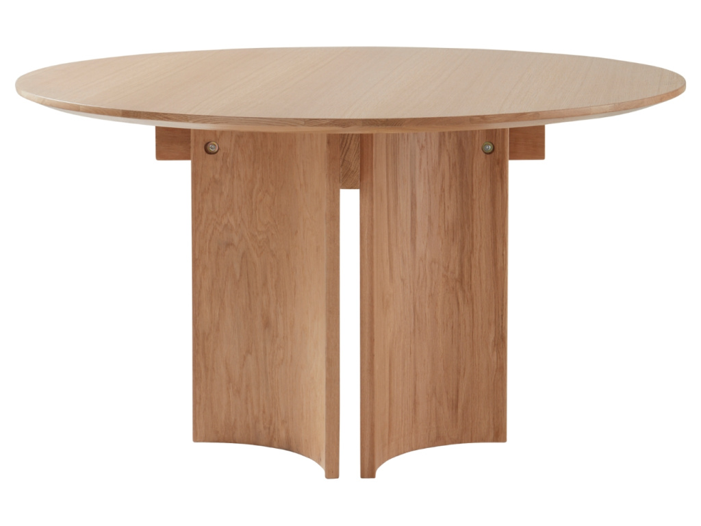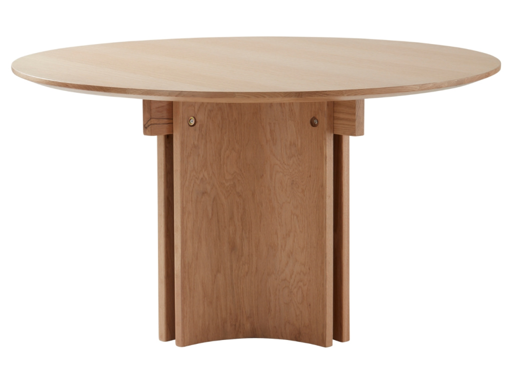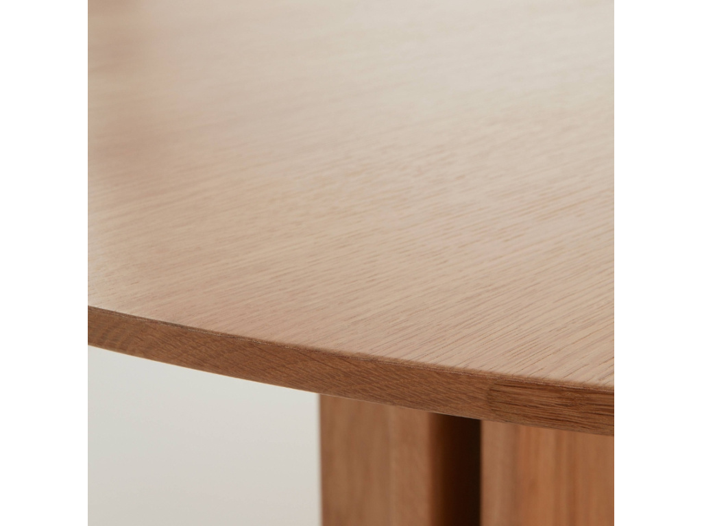 Jídelní stůl KUNGSHOLMEN je důkazem, že v jednoduchosti se skrývá síla. Jeho kulatá deska v přírodní dubové dýze a originálně řešená středová podnož z masivu působí jako architektonický prvek – stabilní, čistý a esteticky vyvážený. Design, který je klidný a přesto výrazný, vytváří přirozený střed místnosti i každého společného jídla. Přirozený odstín dřeva v kombinaci s originálními liniemi podtrhuje útulnou atmosféru prostoru a zároveň působí moderně. Je to stůl, ke kterému se rádi vracíte – ať už ke snídani ve dvou nebo k večeři s přáteli. Kungsholmen kombinuje funkčnost s designem, který nestárne.