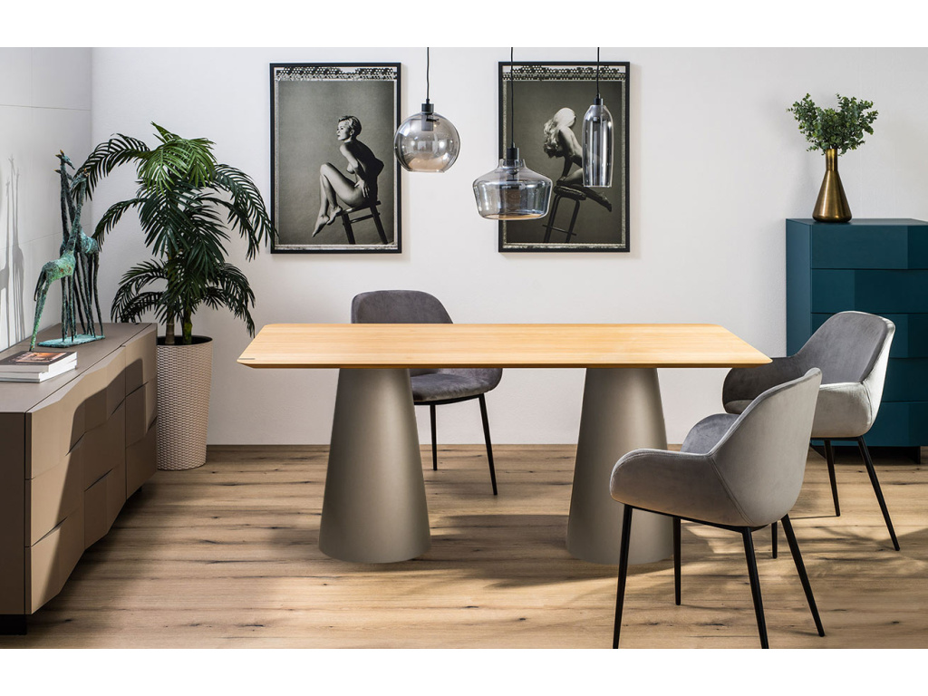Luxusní jídelní stůl Marco Barotti Tivoli je designový kousek, který vás upoutá již na první pohled. Dýhovaná dubová deska v krásném přírodním odstínu vytváří společně s lakovanou MDF podnoží v matném titanově šedém odstínu jedinečné spojení, které zaujme zejména ty, kteří milují kvalitní materiály v moderním pojetí. Marco Barotti je koncept několika designérů, které spojuje smysl pro detaily a vášeň dělat funkční a zároveň moderní designový nábytek. Přídavnou otočnou desku je možné samostatně dokoupit.