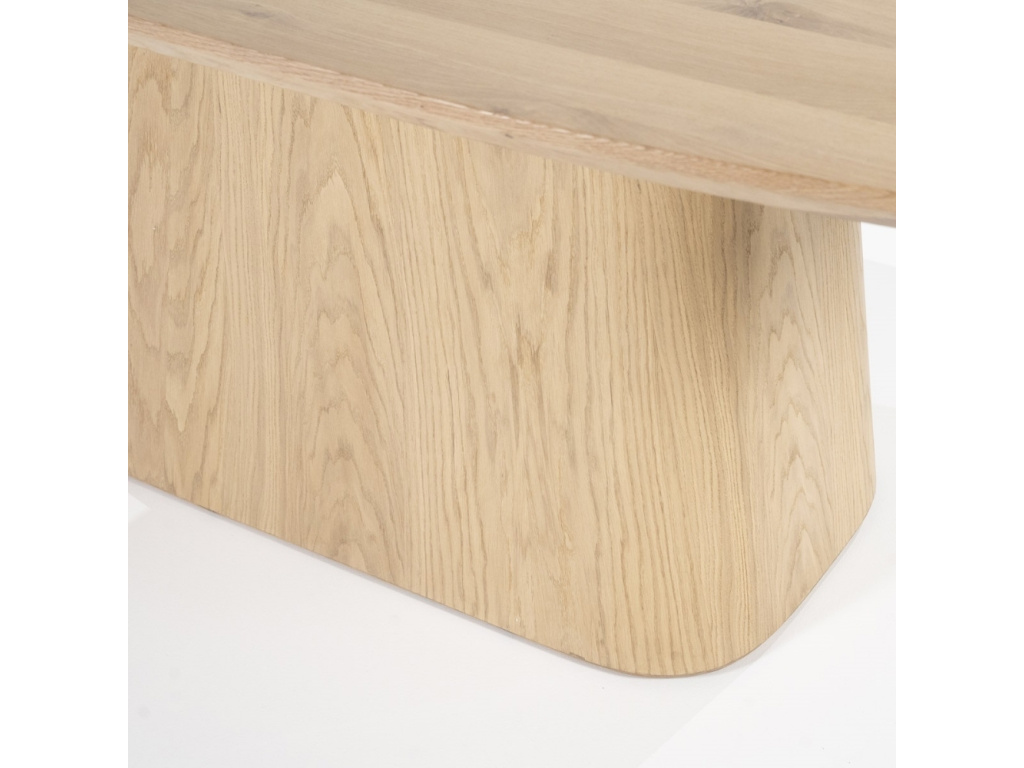 Nechte se unést organickými tvary designového jídelního stolu Nola od značky Eleonora, který vás okouzlí svými křivkami, ale i kvalitním materiálem. Stoly jsou vyrobeny z dubové dýhy v přírodním odstínu, díky čemuž perfektně zapadnou do klasických i rustikálně laděných interiérů. Dřevěná podnož se skládá z jednotlivých pruhů dřeva, což stolu dodává jeho unikátní vzhled. Pozvěte přátele nebo uspořádejte rodinnou večeři a užijte si společné chvíle u této jedinečné designovky!
