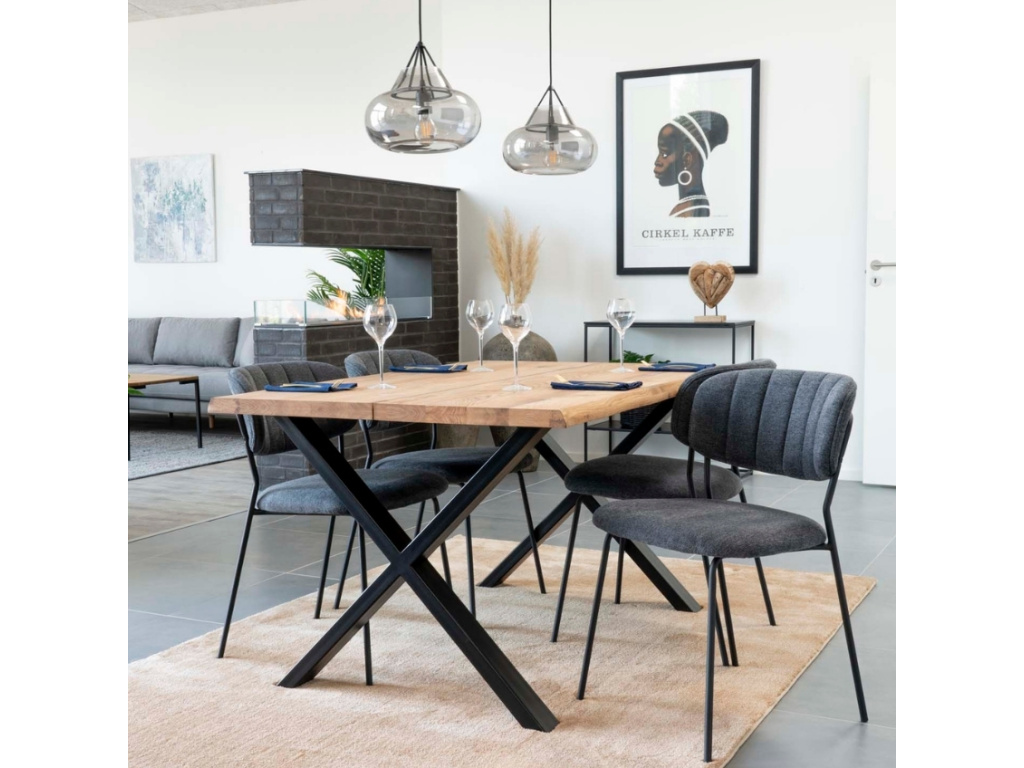 Jídelní stůl Nordic Living Tolon je charakteristický svým rustikálním designem z dubového dřeva, které dodává stolu jedinečný styl. Křížená černě lakovaná kovová podnož dotváří celkový design stolu a dodává mu osobitost a styl. Dále mezi jeho vlastnosti patří skvělá stabilita. Hodí se spíše do klasických a rustikálně laděných interiérů. Skvěle zapadne do jídelny v pohodlí domova, ale také do komerčních prostorů.