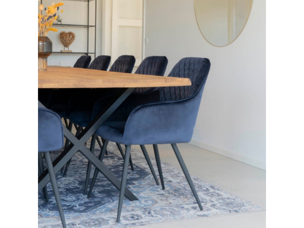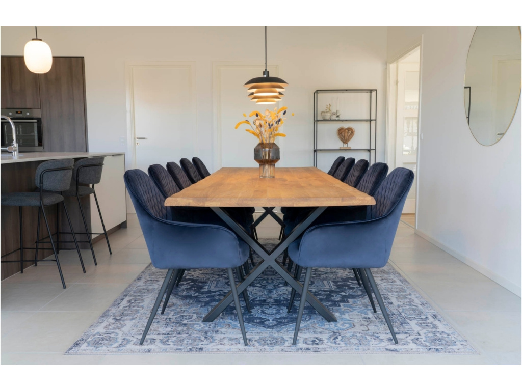 Jídelní stůl Nordic Living Tolon je charakteristický svým rustikálním designem z dubového dřeva, které dodává stolu jedinečný výraz. Křížená černě lakovaná kovová podnož dotváří celkový design stolu a dodává mu osobitost a styl. Dále mezi jeho vlastnosti patří skvělá stabilita. Hodí se spíše do klasických a rustikálně laděných interiérů. Skvěle zapadne do jídelny v pohodlí domova, ale také do komerčních prostorů.