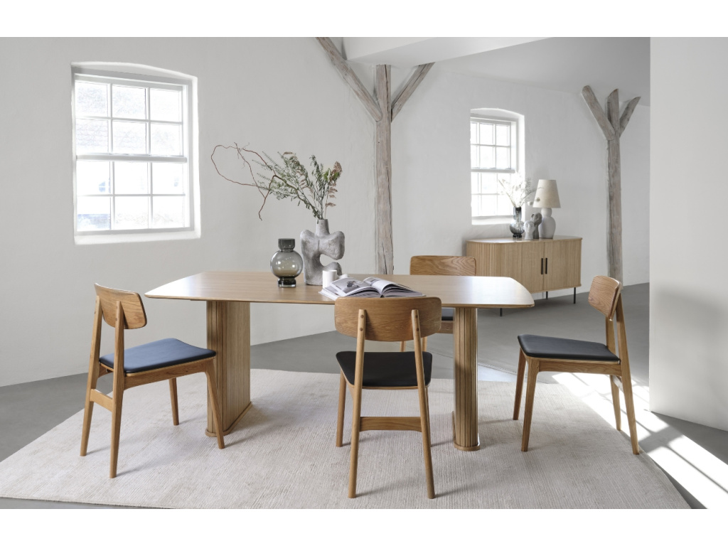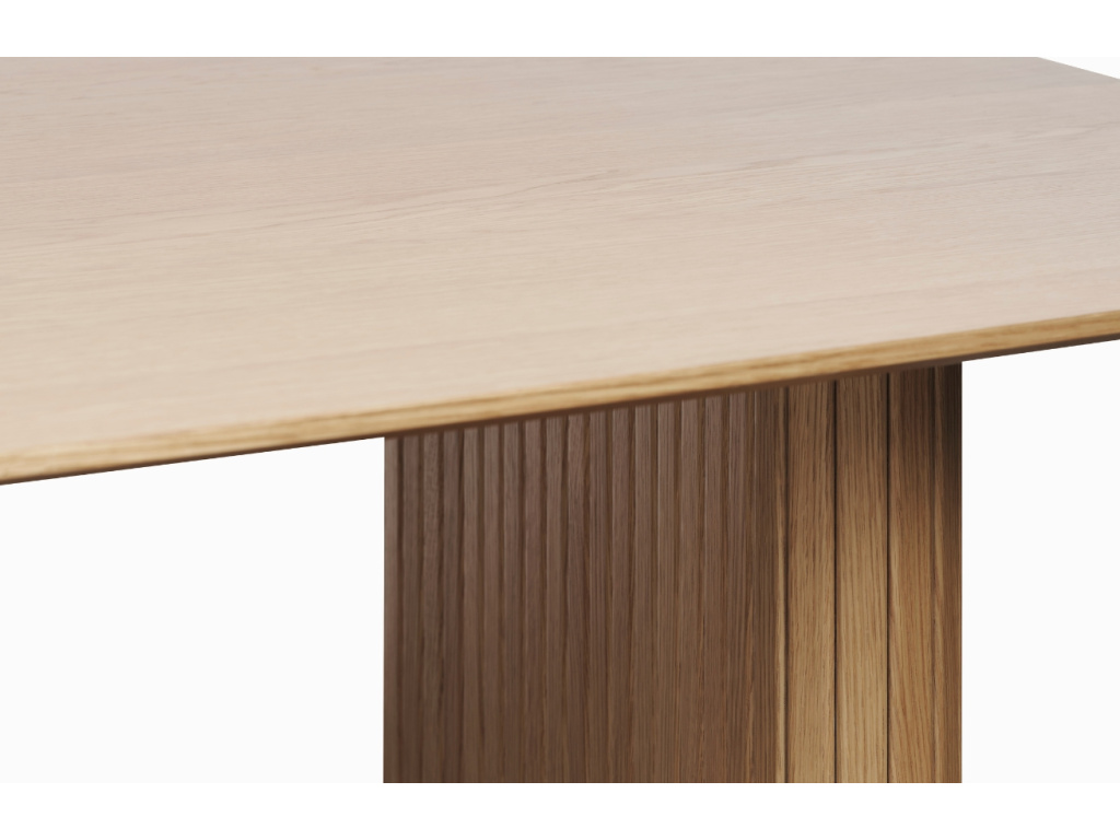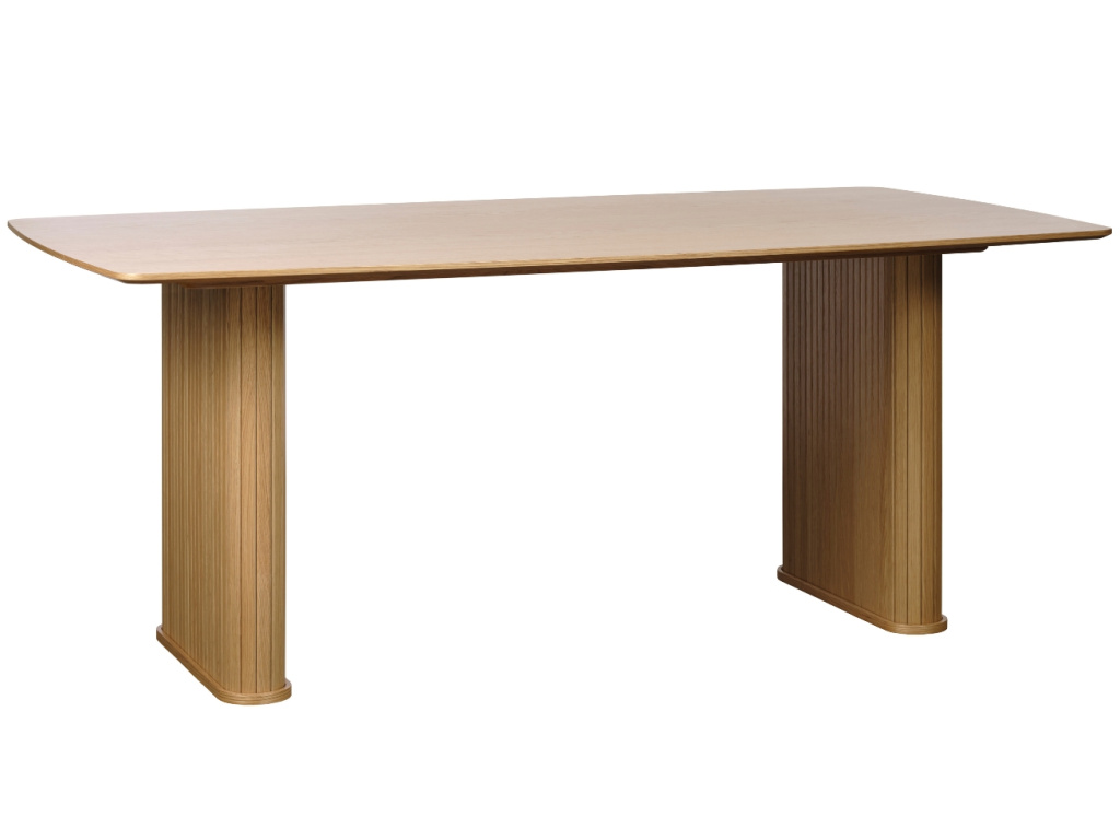 Po náročném pracovní dni se každý těší na společnou večeři doma s rodinou. U prostorného stolu Nola od značky Unique Furniture si společné jídlo opravdu vychutnáte! Nola promění jídelnu v útulné místo, kam se budete rádi vracet. Deska a podnož z dubové dýhy v přírodním odstínu dodávají stolu příjemný a elegantní vzhled. Stůl zaujme především podnožemi, které mají stylový motiv žebrování. Pozvedněte svoji jídelnu tímto designovým kouskem, který bude bezpochyby dominantou vašeho interiéru. Pohodlně se kolem něj usadí až 6 osob. V sérii Nola najdete více designově sladěných produktů, které se budou v interiéru skvěle doplňovat. Stolek nabízíme ve dvou barevných variantách, takže si určitě vyberete ten správný kousek přímo do vašeho domova.